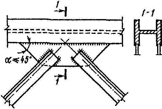 1.2. Сокращение массы наплавленного металла при проектировании сварных соединений и элементов конструкций достигается путем повышения расчетных сопротивлений соединений с угловыми швами за счет применения эффективной технологии сварки и электродных материалов; соблюдения требований по назначению минимально допустимых катетов угловых швов, устанавливаемых в зависимости от наибольшей толщины свариваемых элементов, вида сварки и механических свойств стали; применения односторонних угловых швов в поясах сварных двутавров, при приварке ребер жесткости, диафрагм и других деталей, а также уменьшения количества деталей в элементах конструкций или их размеров (применения односторонних ребер жесткости, исключения фасонок в решетчатых конструкциях или уменьшения их размеров в связи с повышением расчетных сопротивлений соединений с угловыми швами и др.).