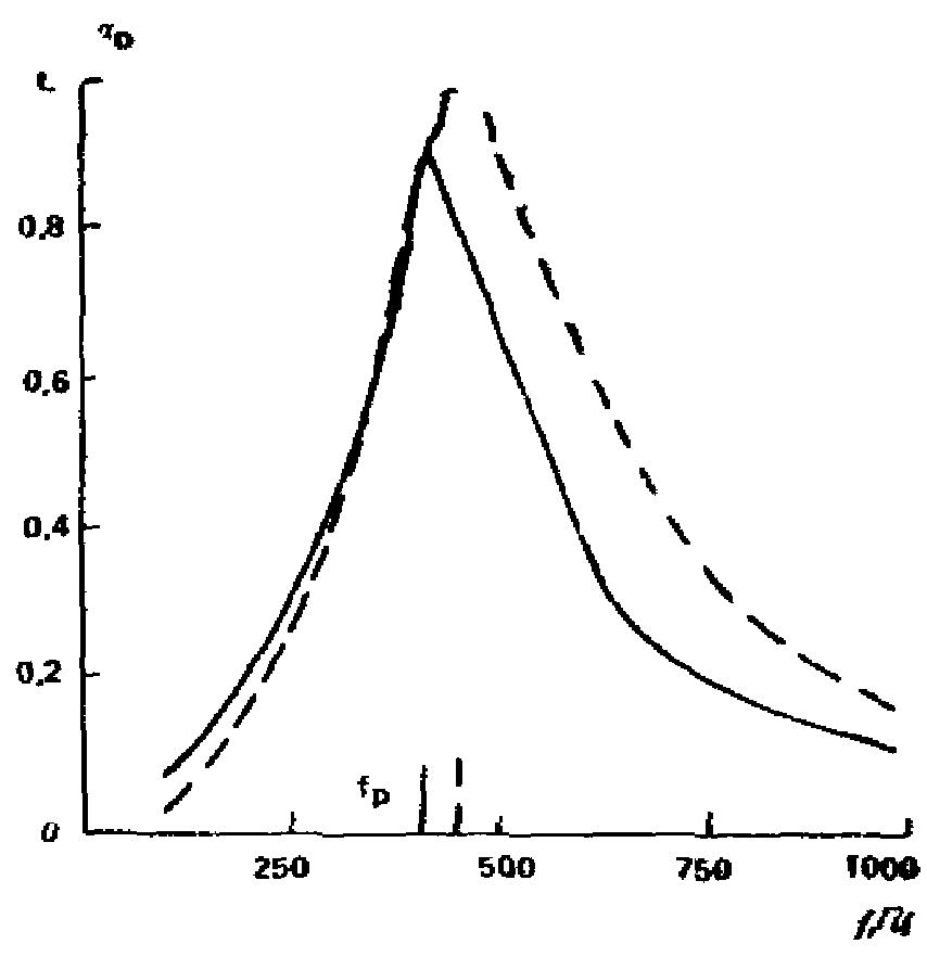 Акустическую эффективность резонансного поглотителя характеризуют также шириной резонансной кривой поглощения