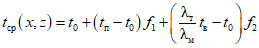 t0 = -1,5 °C; коэффициенты теплопроводности глинистого грунта в мерзлом и талом состояниях соответственно равны: