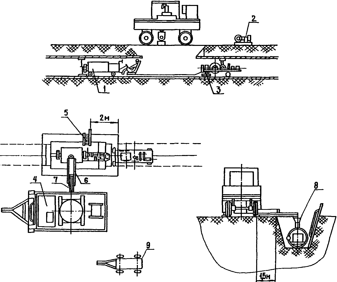 Для облицовки труб в цеховых условиях транспортная тележка должна быть заменена тележкой с подъемником, осуществляющим подъем облицовочной машины (на 3 м) для облицовки второго и третьего рядов труб, смонтированных на стеллажах.