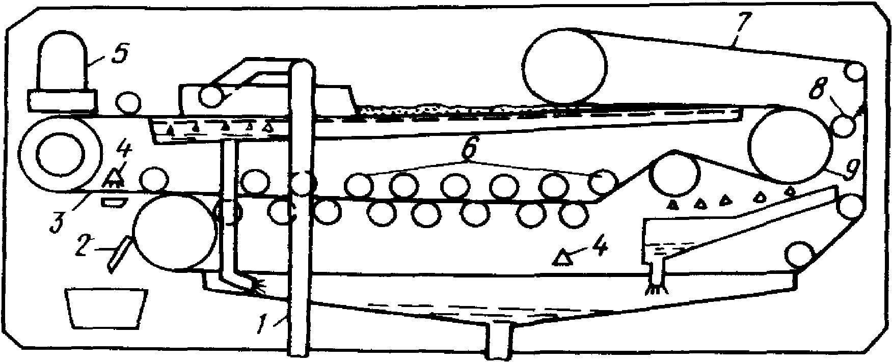 воздух; 8 - промывное устройство; 9 - фильтр-пресс;