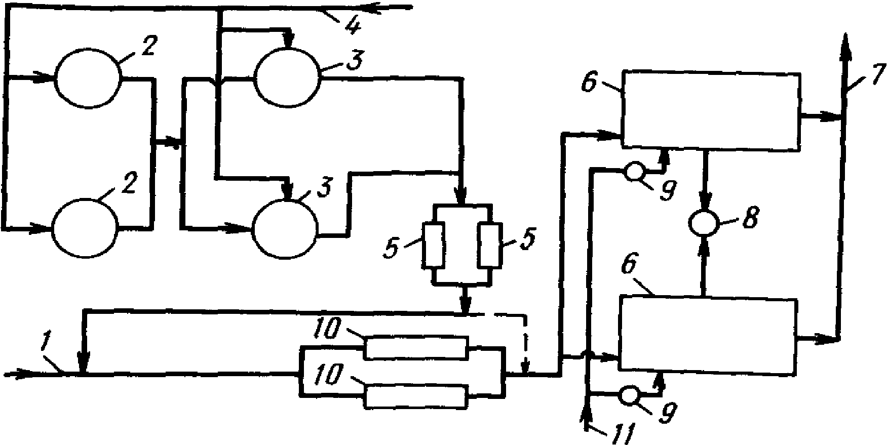 воды; 10 - насосы-дозаторы осадка; 11 - подача