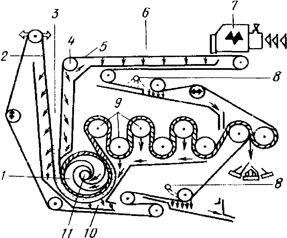 10 - подача воздуха на продувку; 11 - бункер обезвоженного