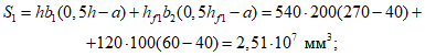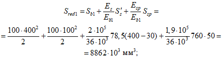 - статические моменты соответственно всей площади поперечного сечения сборно-монолитного элемента и площадей, образованных j-м бетоном с прочностью бетона