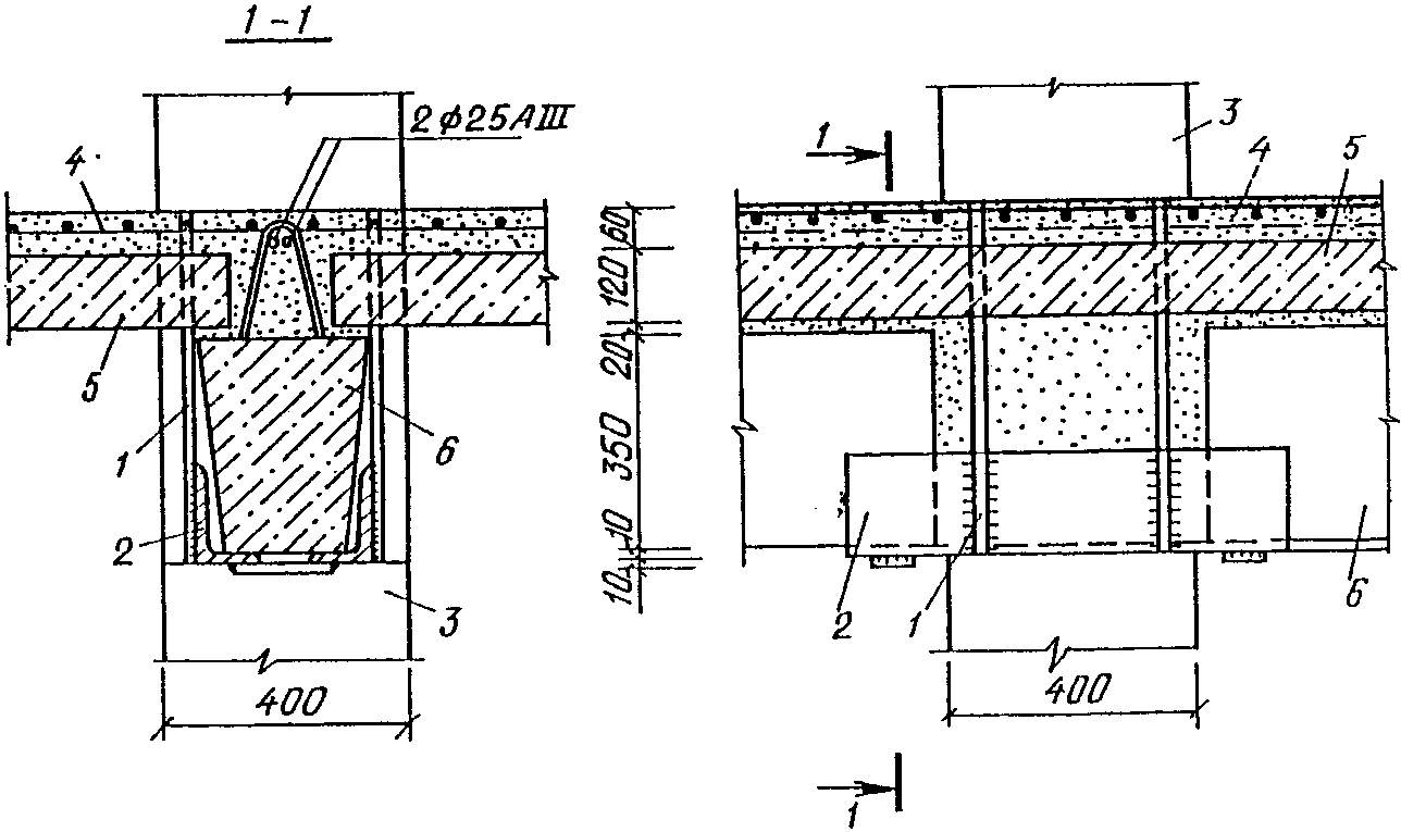 4 - плита-ригель; 5 - колонна; 6 - бетон замоноличивания;