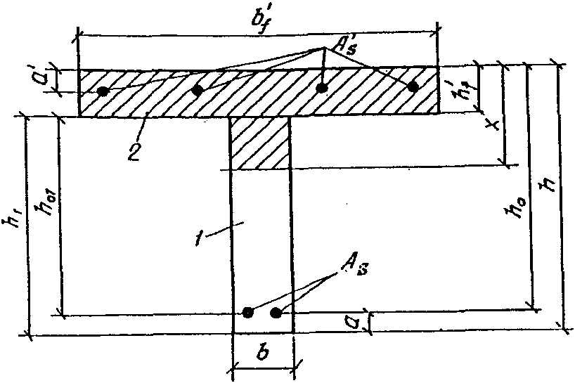 СНиП 2.03.01-84; расчет элементов сборно-монолитных конструкций после приобретения бетоном омоноличивания заданной прочности - в соответствии с рекомендациями настоящего Пособия. При этом в тексте Пособия характеристики, относящиеся к сборным элементам, имеют индекс 1, а к бетону омоноличивания - 2.