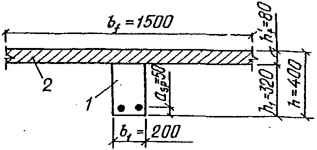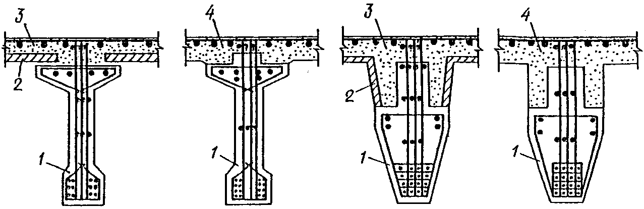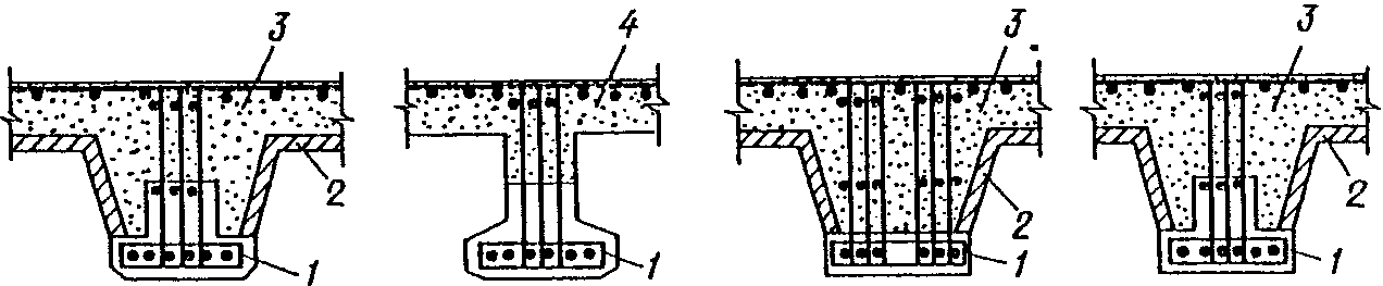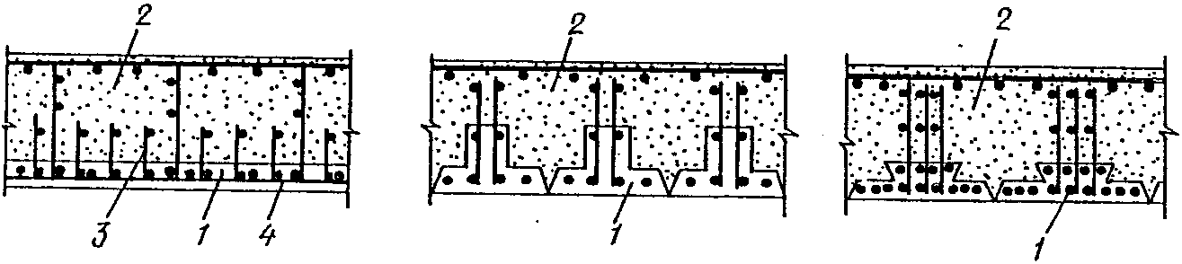 1 - преднапряженные балки; 2 - слой монолитного бетона;