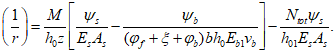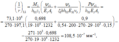 Полную величину кривизны изгибаемых, внецентренно сжатых и внецентренно растянутых конструкций при наличии начальных трещин в сборном элементе определяют по