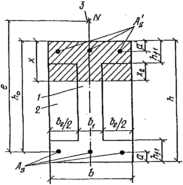 2.5. Расчет сечений сборно-монолитных элементов в случае, когда внешняя сила действует в плоскости оси симметрии сечения и арматура сосредоточена у перпендикулярных указанной плоскости граней элемента, производят в соответствии с