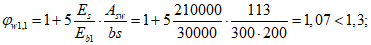 2.6. Для железобетонных слабоармированных элементов, характеризуемых тем, что их несущая способность исчерпывается одновременно с образованием трещин в бетоне растянутой зоны, площадь сечения продольной растянутой арматуры должна быть увеличена по сравнению с требуемой из расчета по прочности не менее чем на 15%.