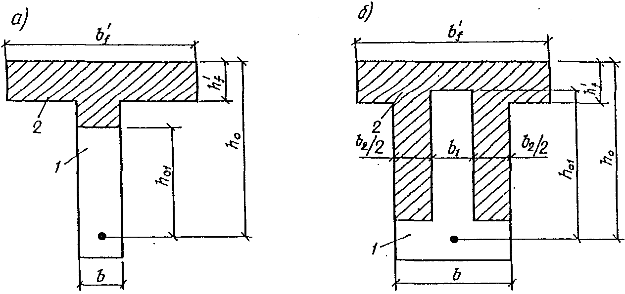 1.1. В Пособии рассматриваются элементы железобетонных сборно-монолитных конструкций, поперечные сечения которых состоят из заранее изготовленных элементов (сборных элементов) и дополнительно уложенных на месте использования конструкций монолитного бетона (бетона омоноличивания) и арматуры (рис. 1).