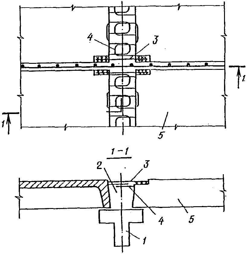 1 - выпуски арматуры колонн; 2 - закладная деталь колонны