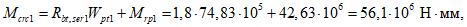 - момент усилия P относительно оси, проходящей через ядровую точку поперечного сечения сборного элемента, наиболее удаленную от растянутой зоны, трещинообразование которой проверяется, определяемый в соответствии с