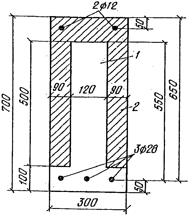 2.3. При наличии в сечении сборно-монолитного элемента арматуры и бетонов разных классов каждую арматуру и бетон с соответствующей частью сечения элемента вводят в расчет прочности с расчетными сопротивлениями, отвечающими этим классам.