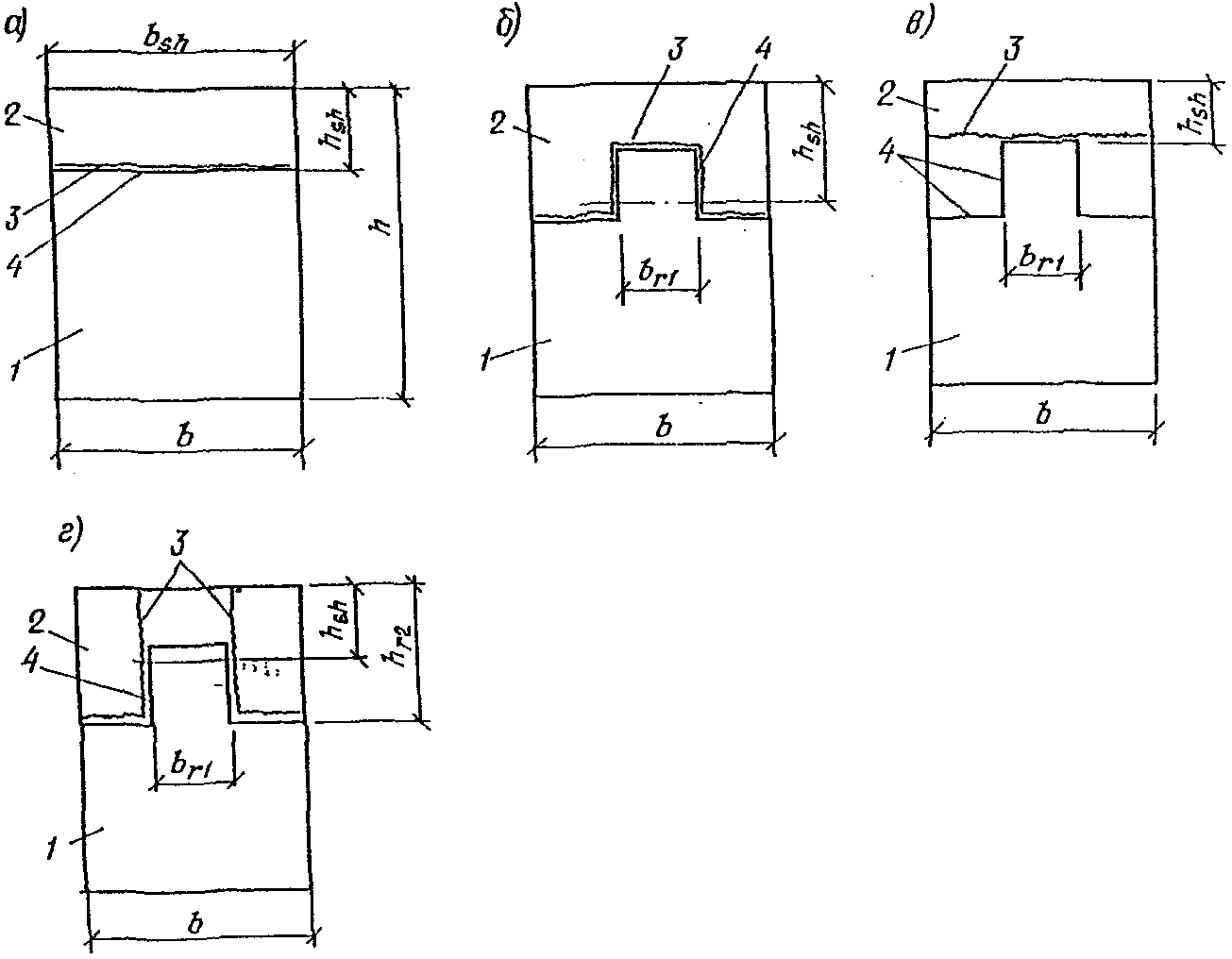 (рис. 30) рекомендуется устраивать по поверхности, где затруднено получение естественной шероховатости (например, по поверхностям, соприкасающимся с опалубкой).