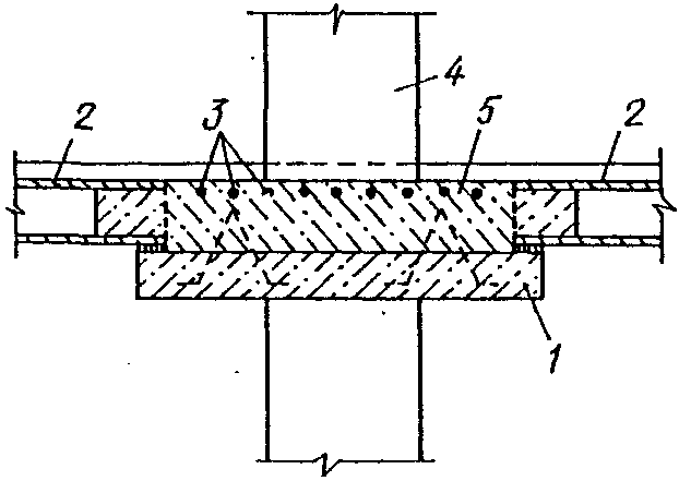 1 - ригель; 2 - монолитный бетон; 3 - надопорная арматура;
