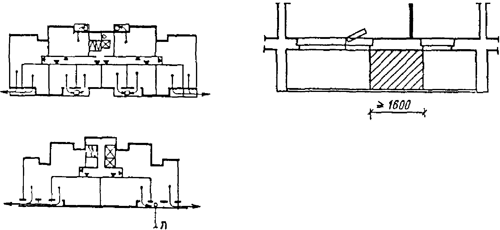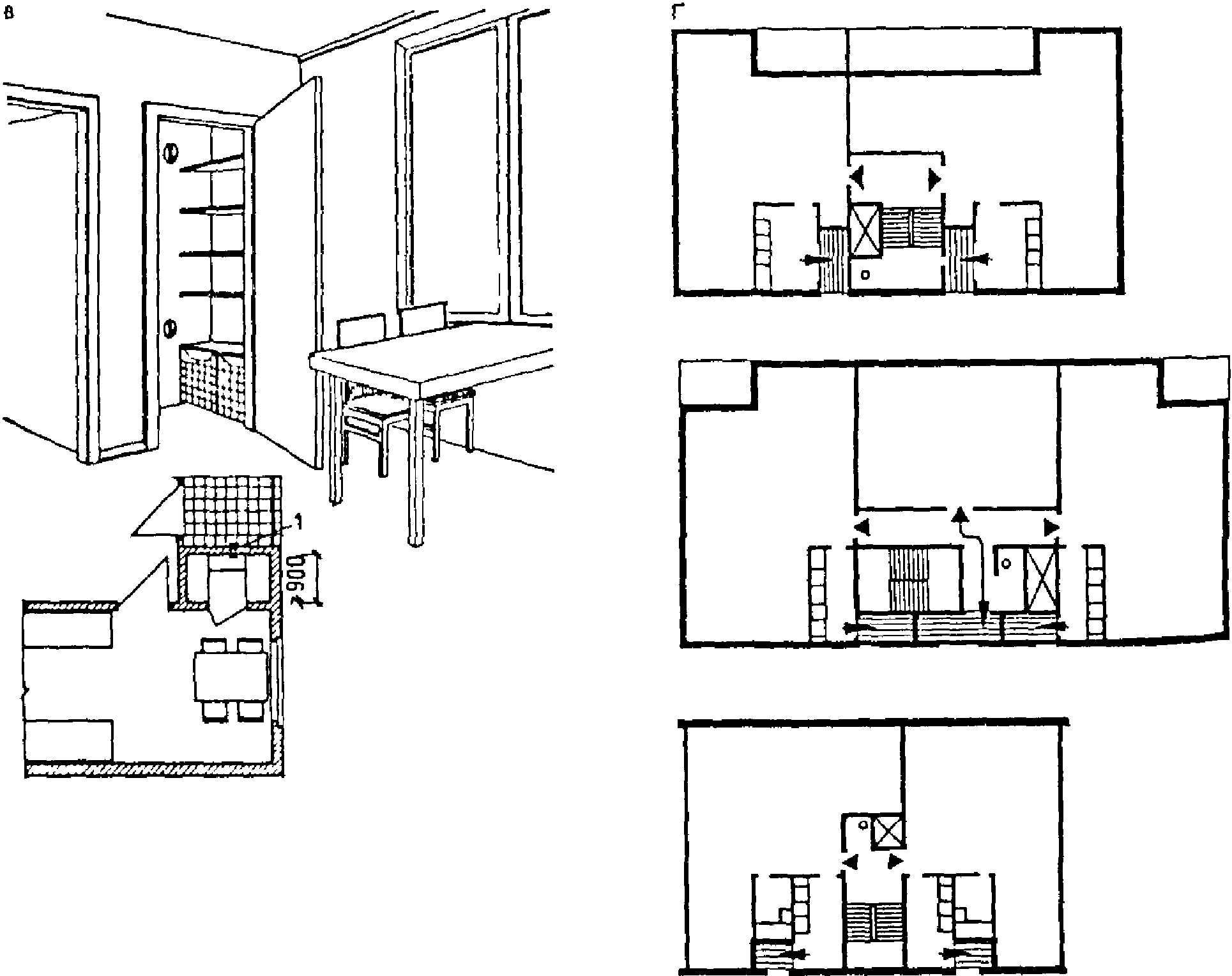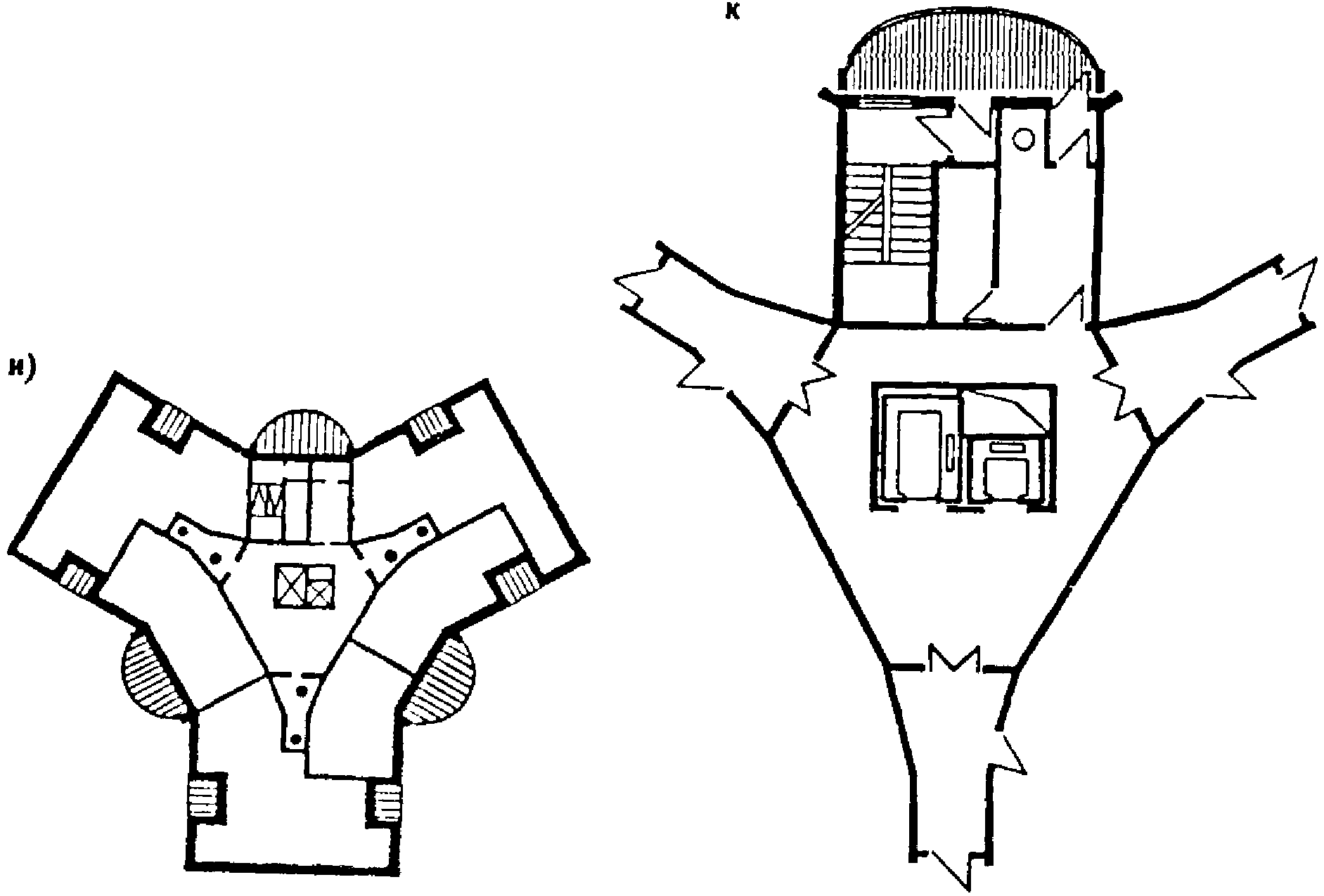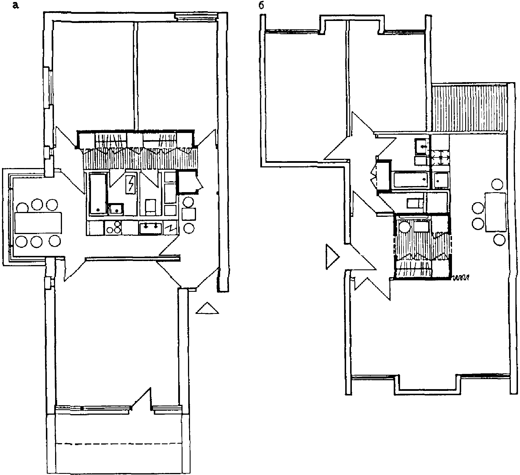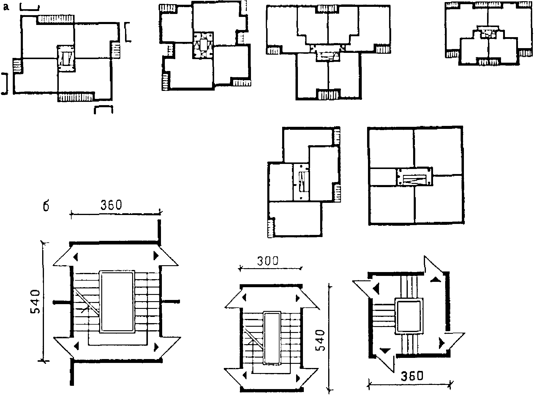(рис. 9). Такая схема целесообразна для секций многосекционных домов и возможна для односекционных домов с Z-образной формой плана.