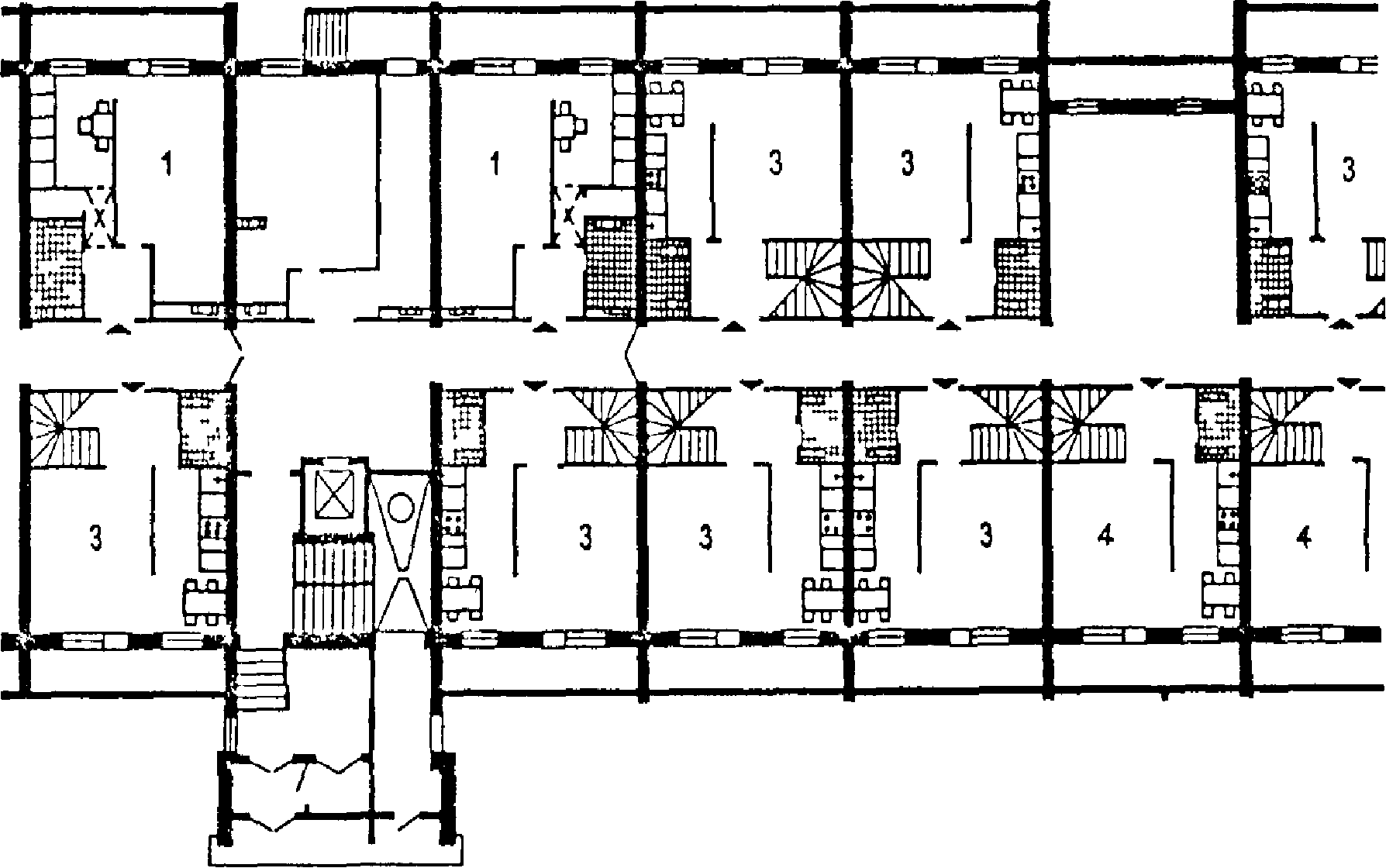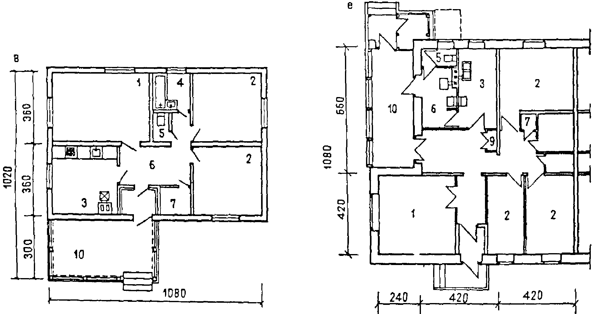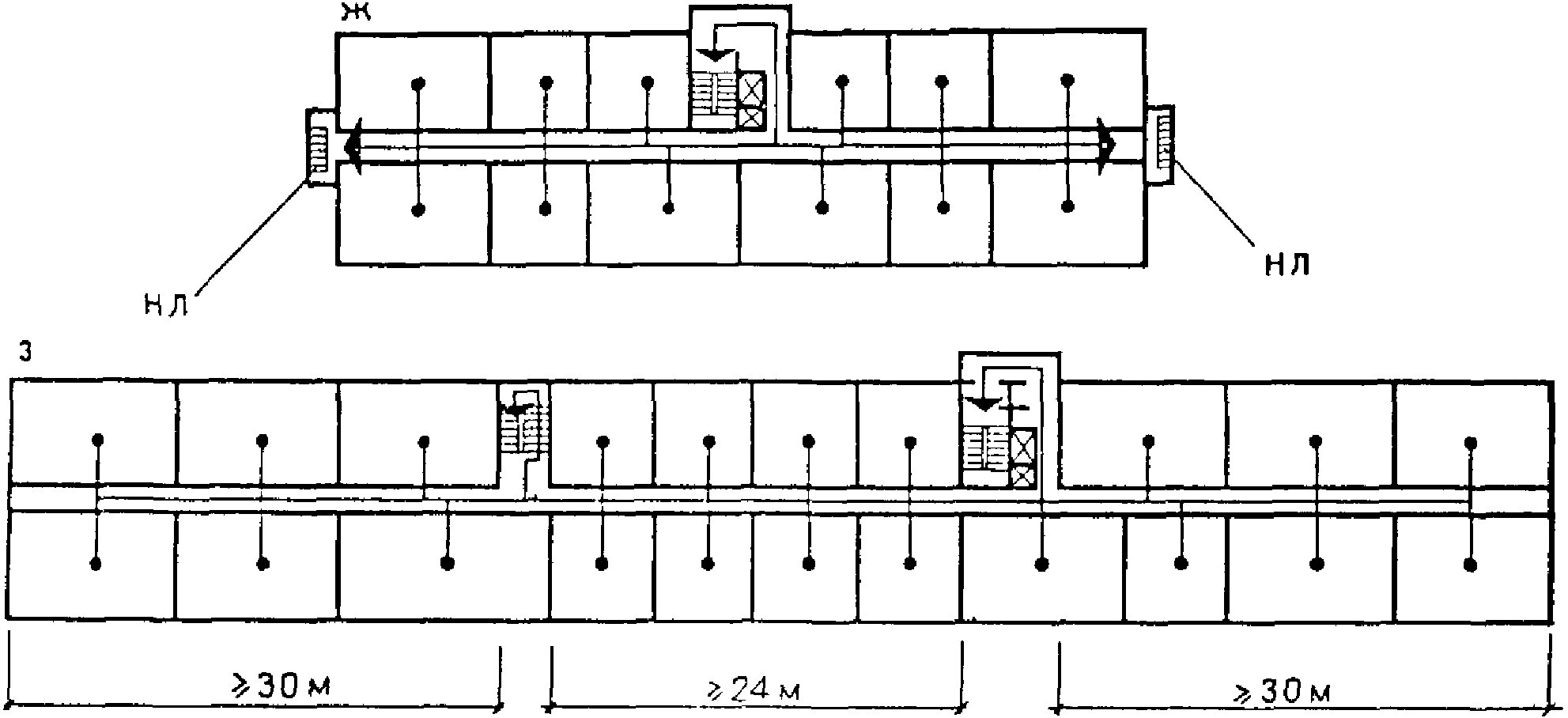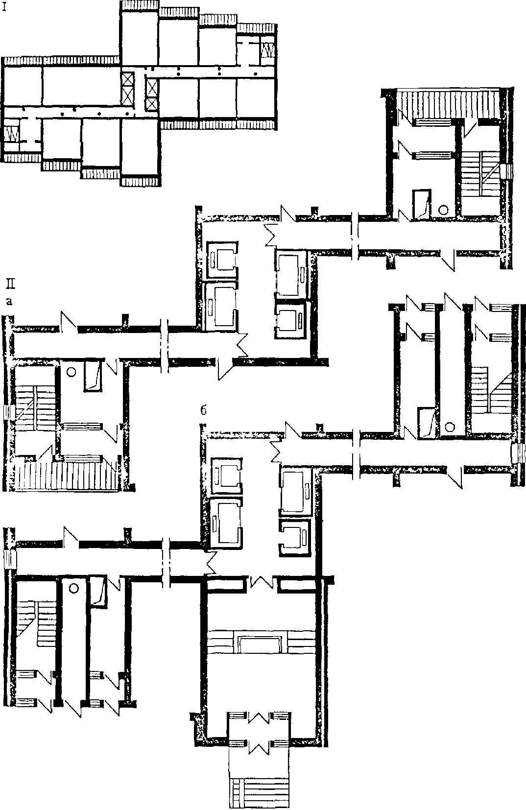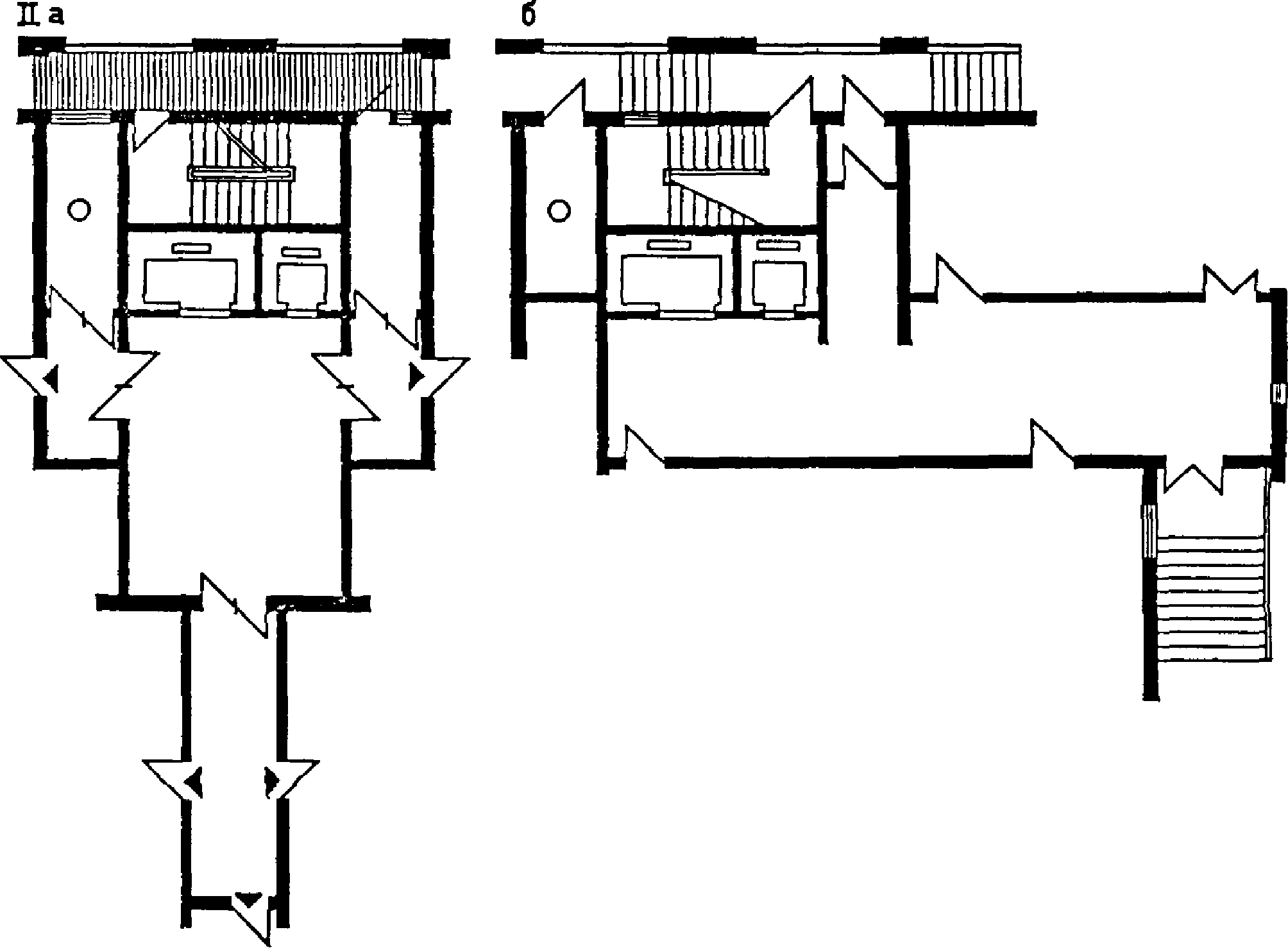 (рис. 9). Такая схема целесообразна для секций многосекционных домов и возможна для односекционных домов с Z-образной формой плана.