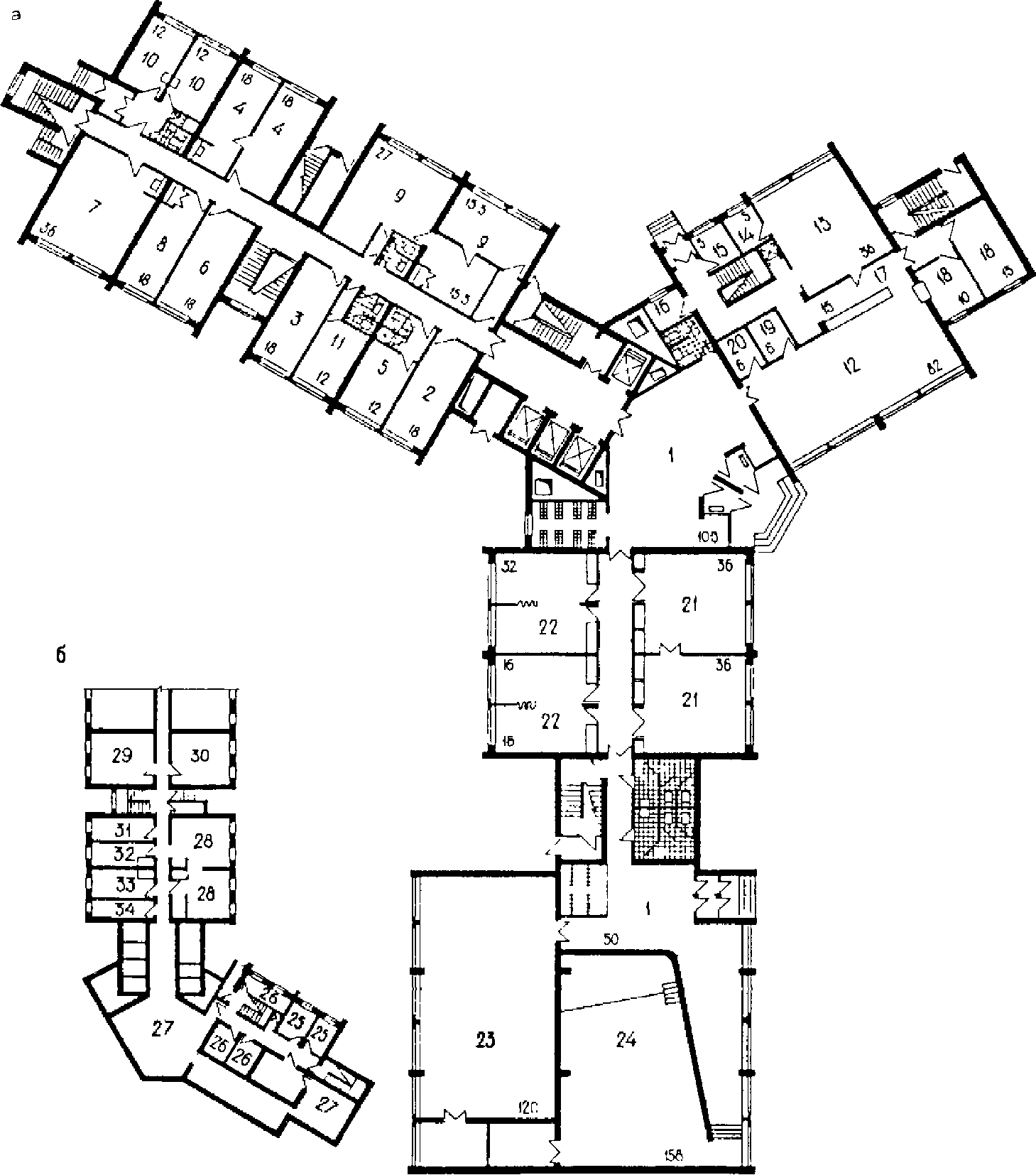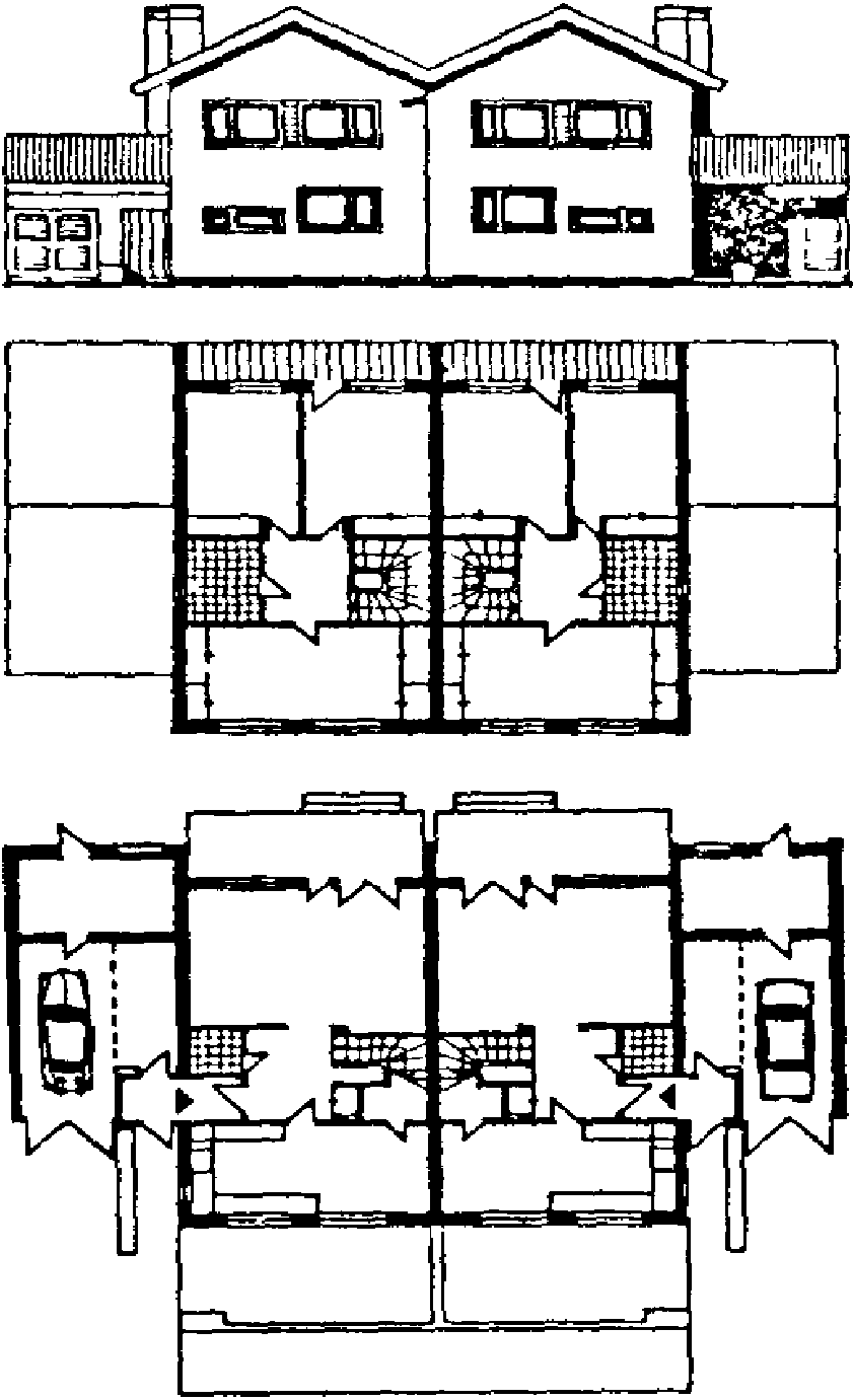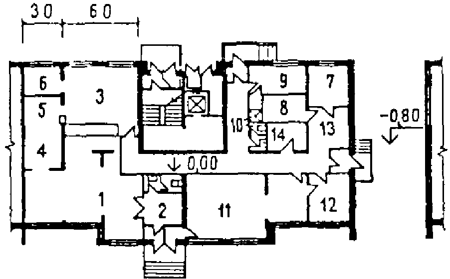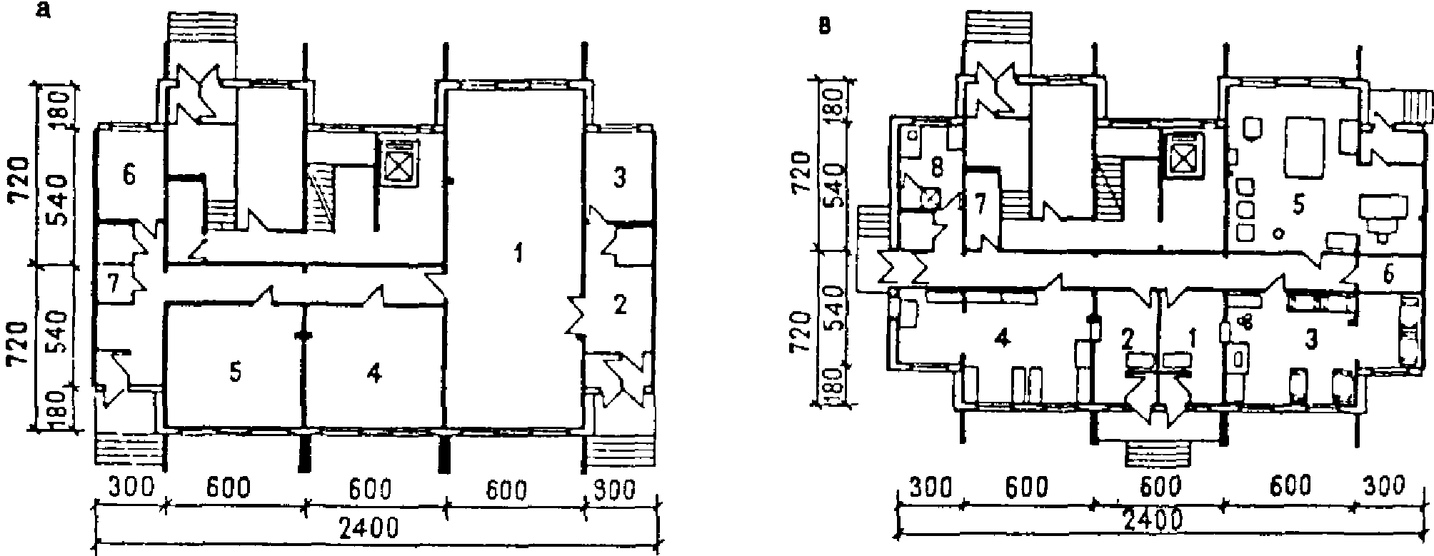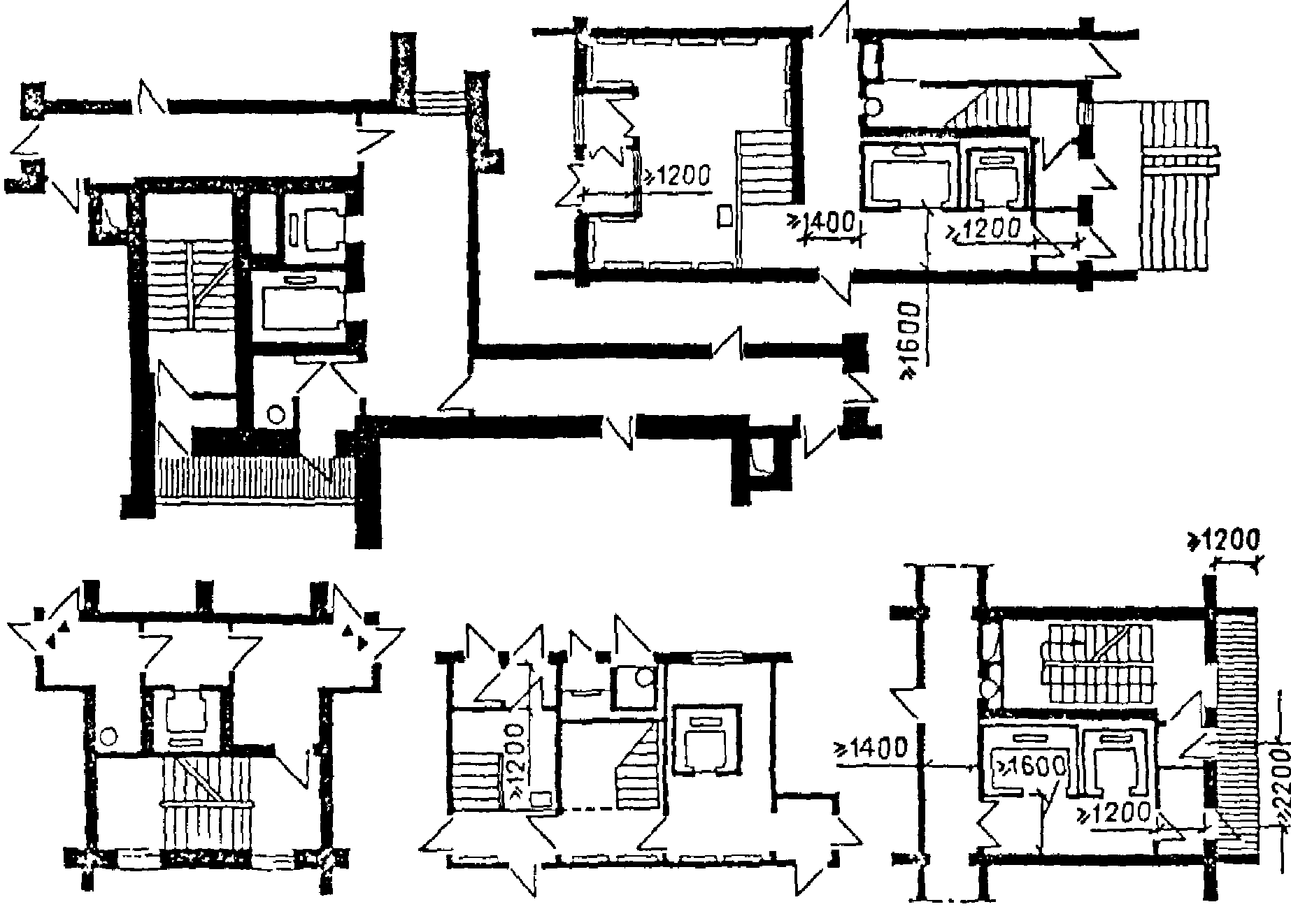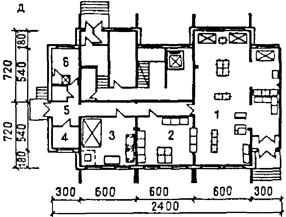 (рис. 9). Такая схема целесообразна для секций многосекционных домов и возможна для односекционных домов с Z-образной формой плана.