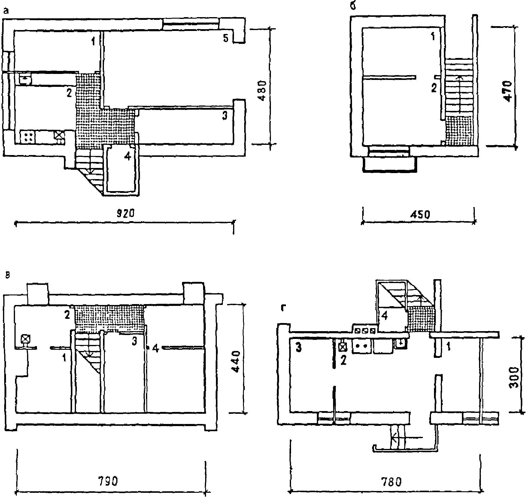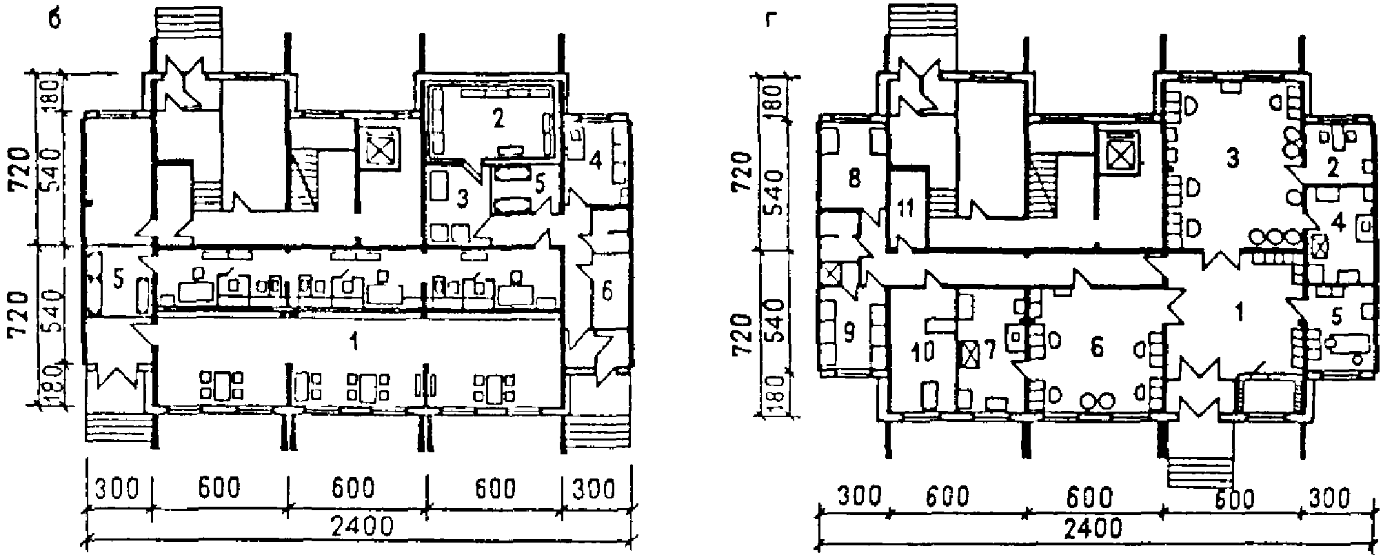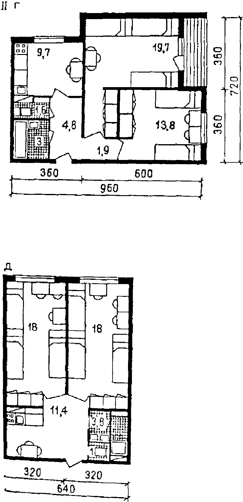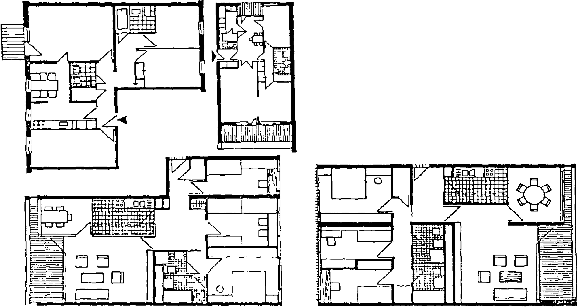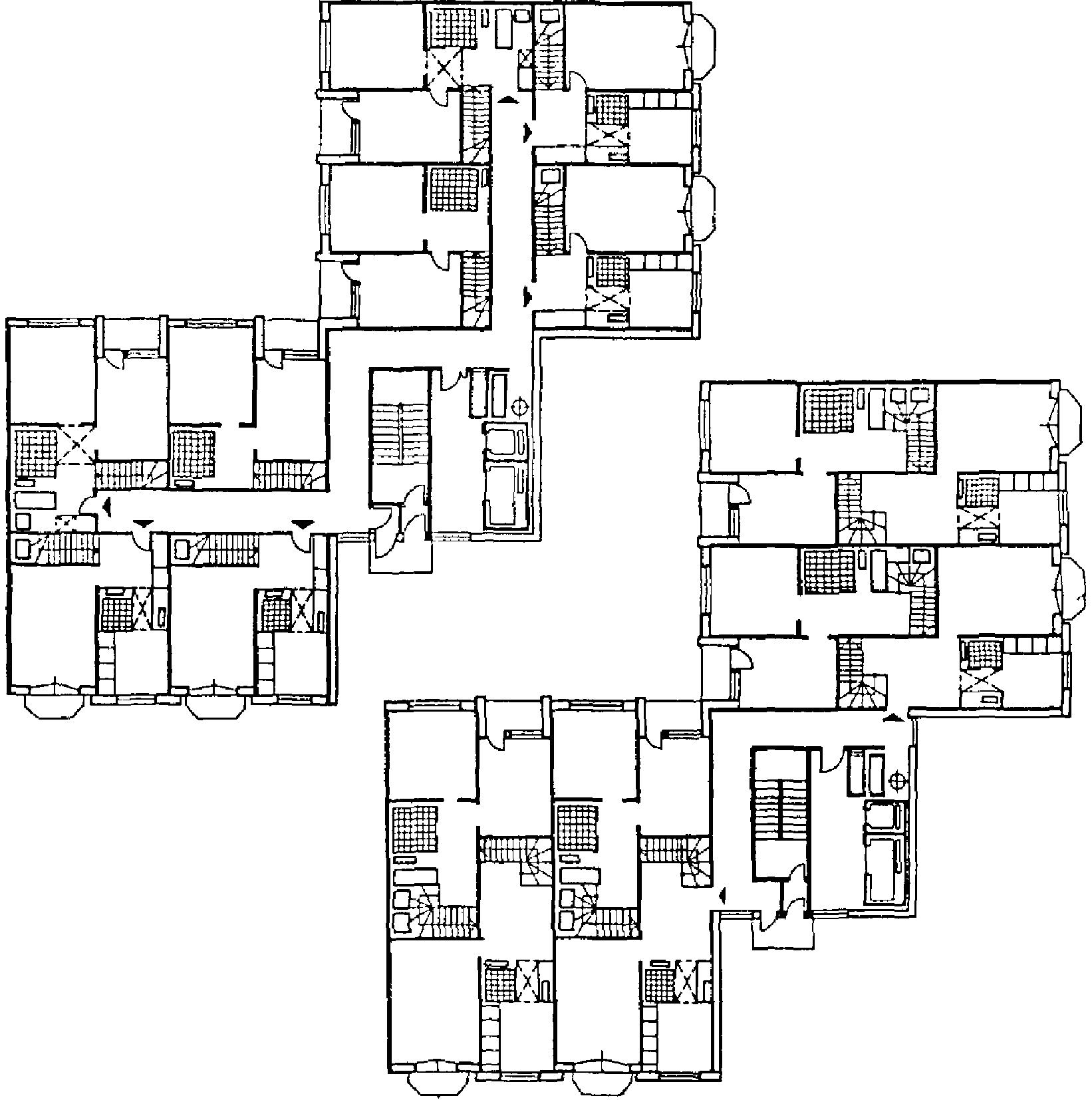 (рис. 9). Такая схема целесообразна для секций многосекционных домов и возможна для односекционных домов с Z-образной формой плана.