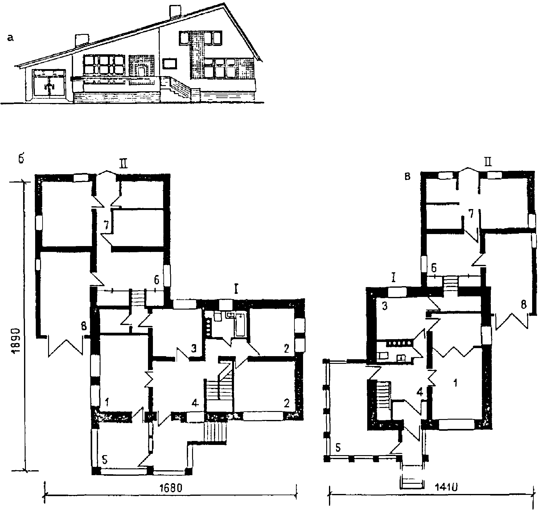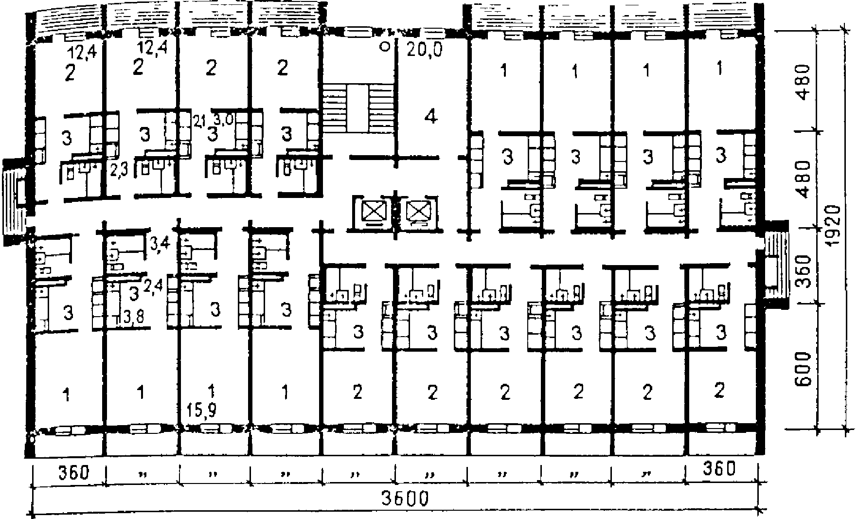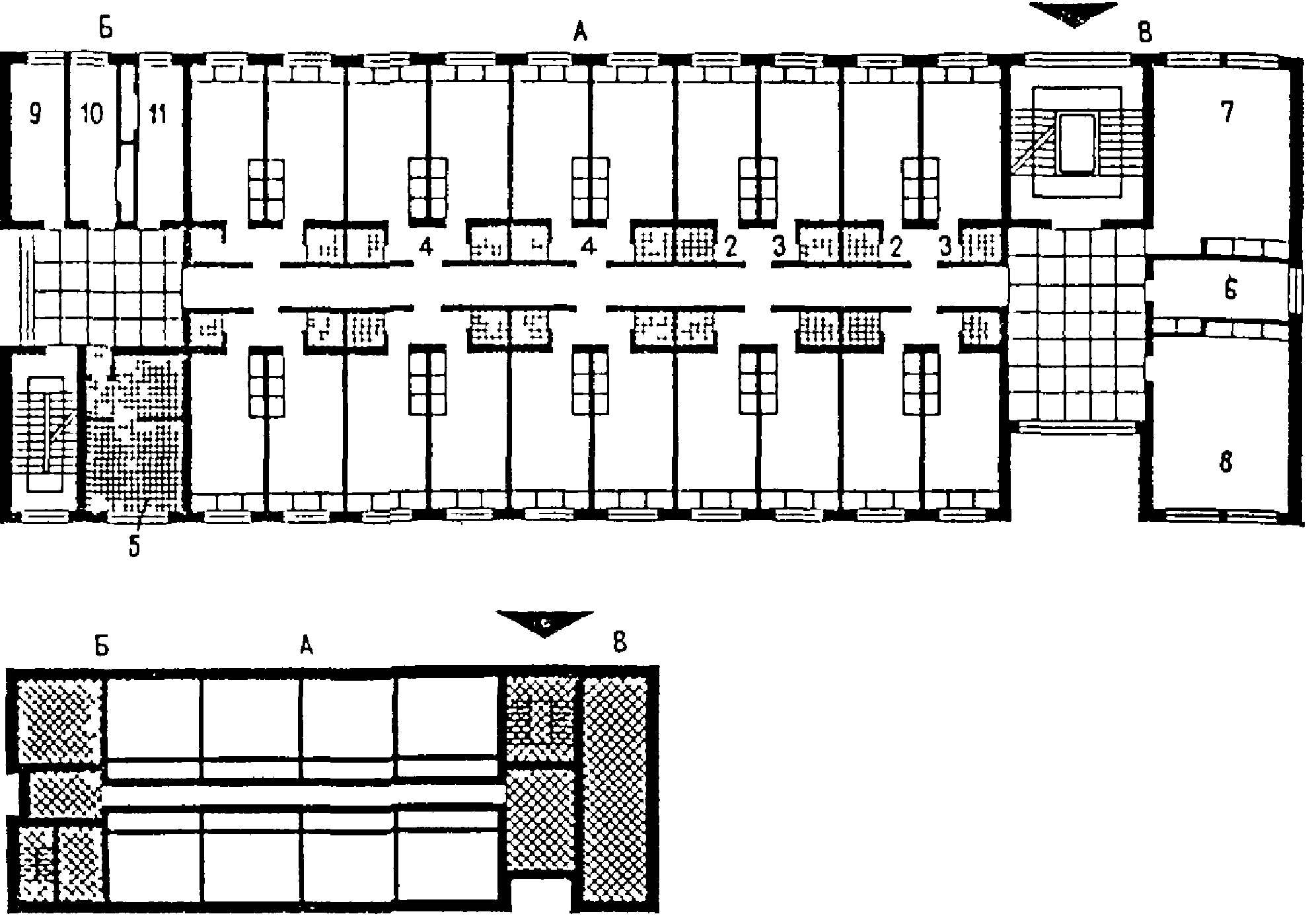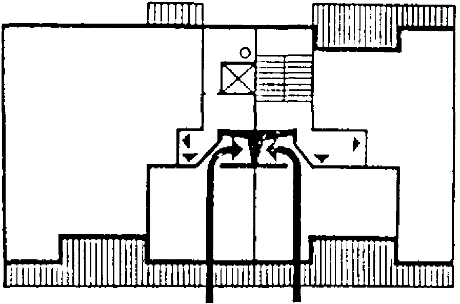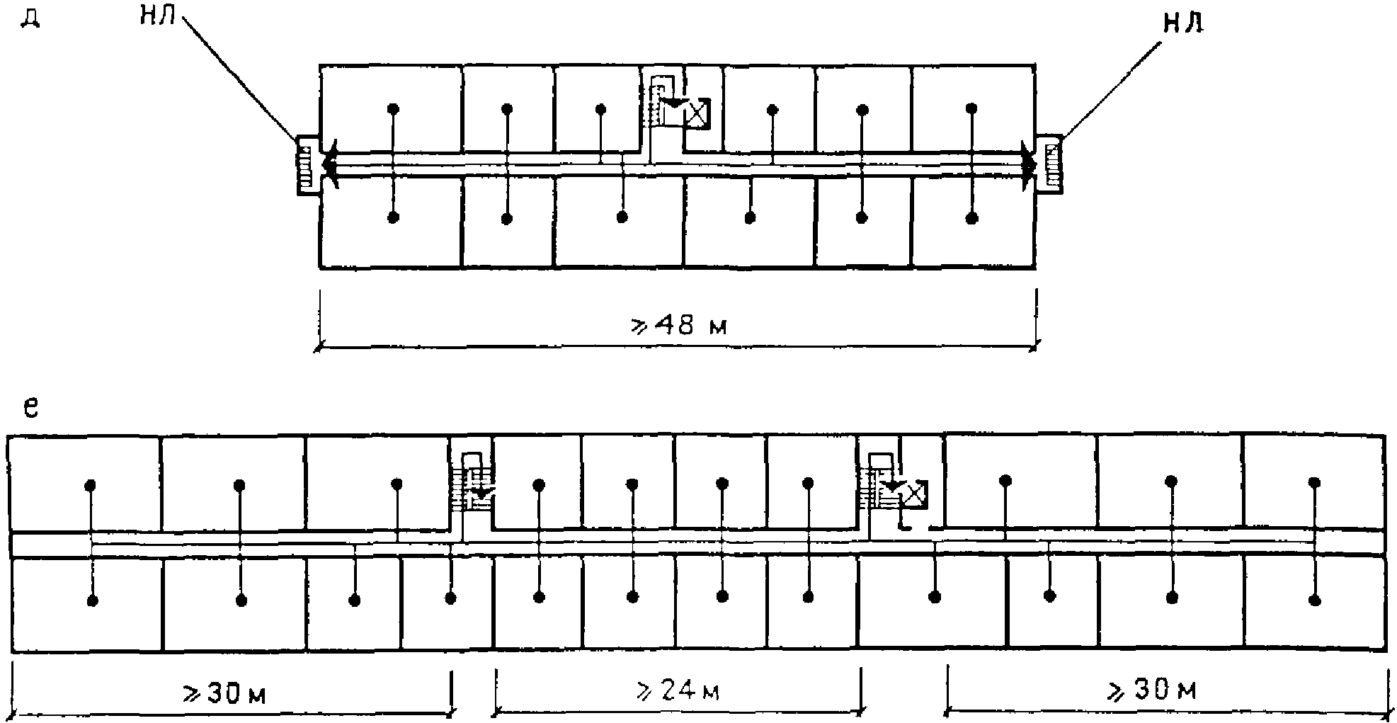 (рис. 9). Такая схема целесообразна для секций многосекционных домов и возможна для односекционных домов с Z-образной формой плана.