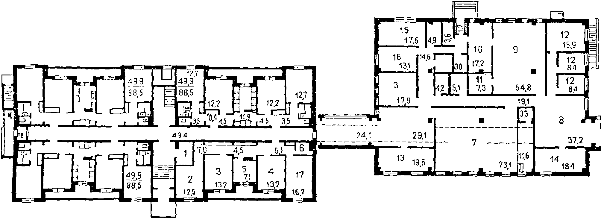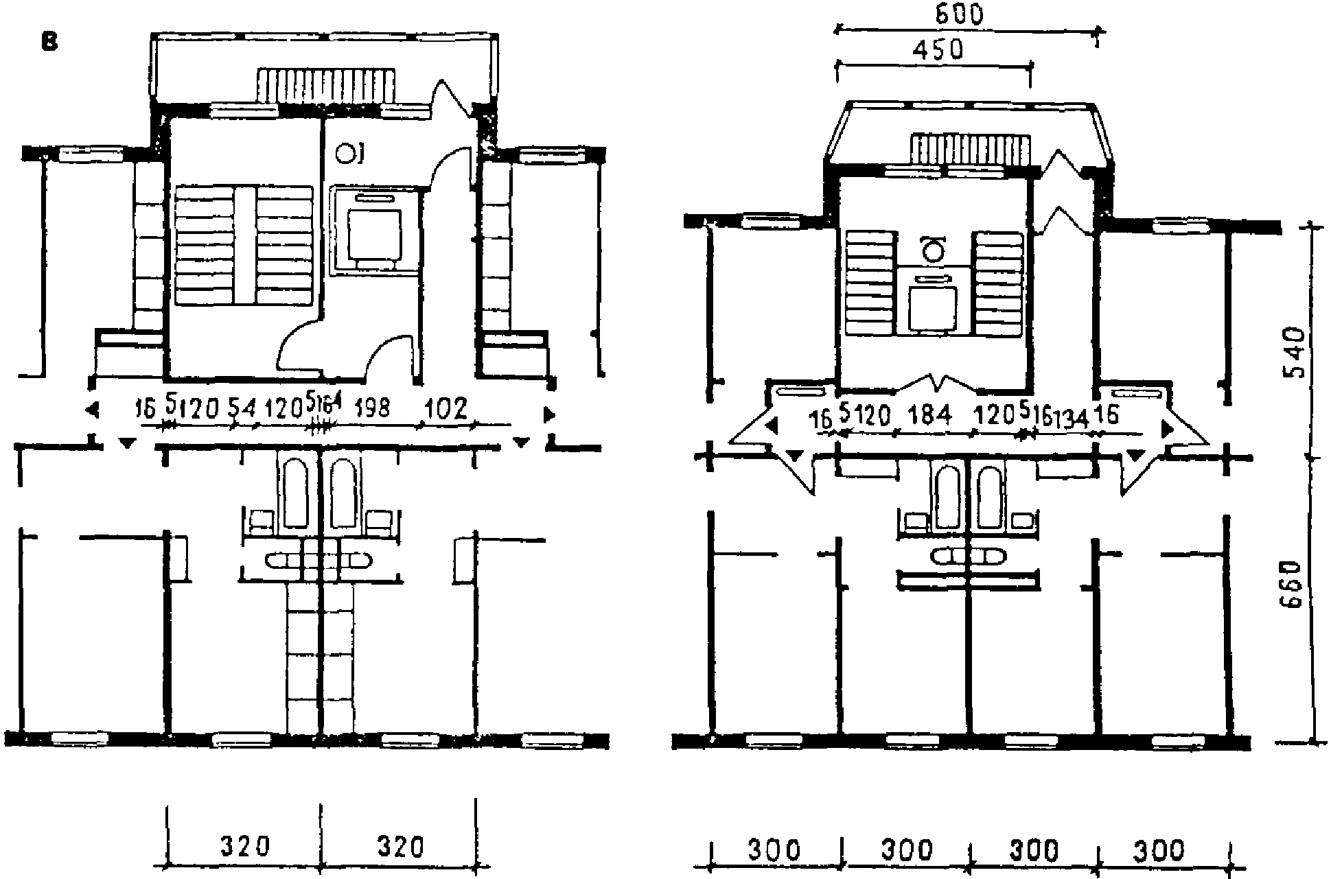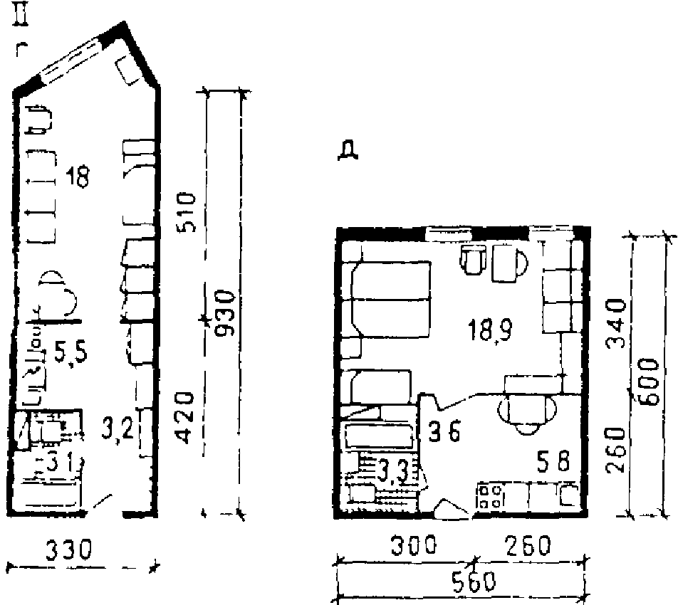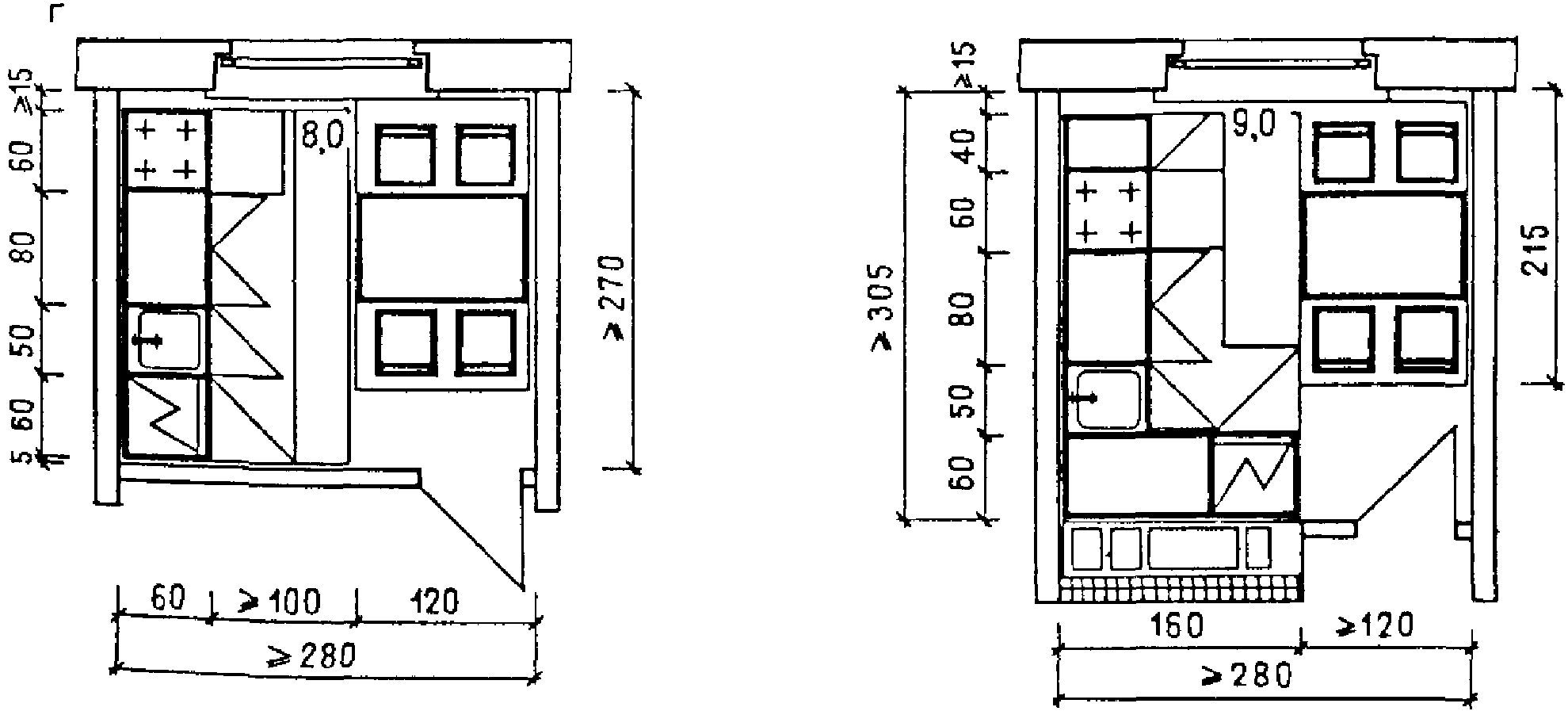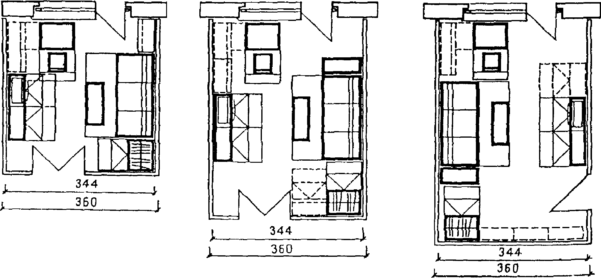 (рис. 9). Такая схема целесообразна для секций многосекционных домов и возможна для односекционных домов с Z-образной формой плана.