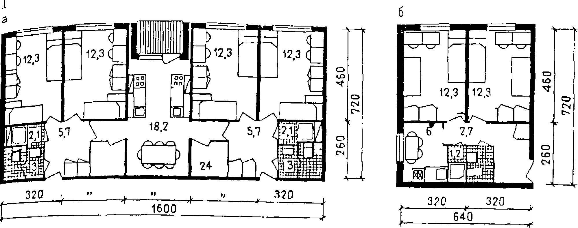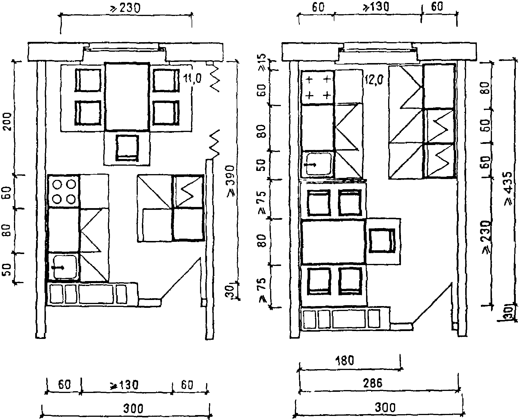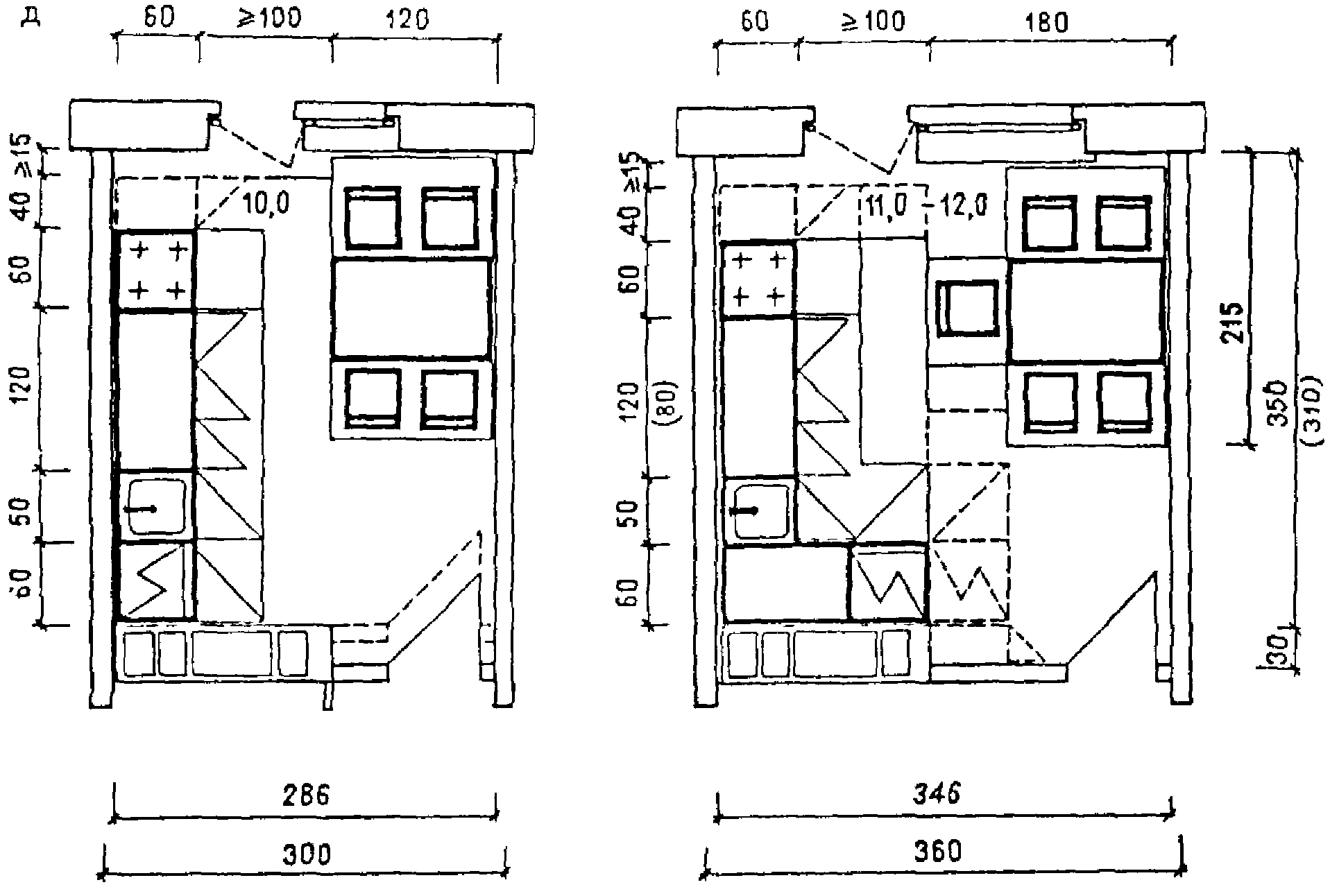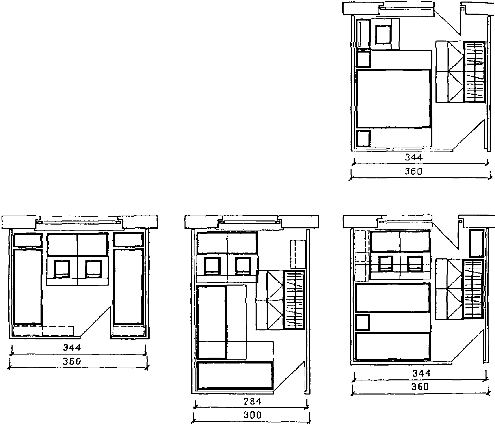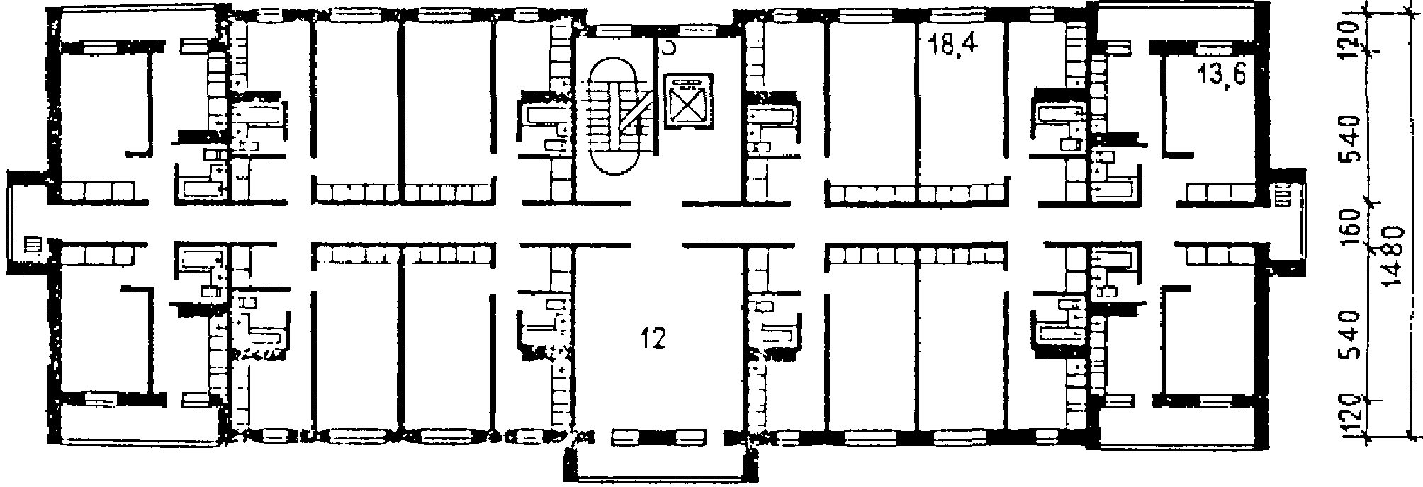 (рис. 9). Такая схема целесообразна для секций многосекционных домов и возможна для односекционных домов с Z-образной формой плана.