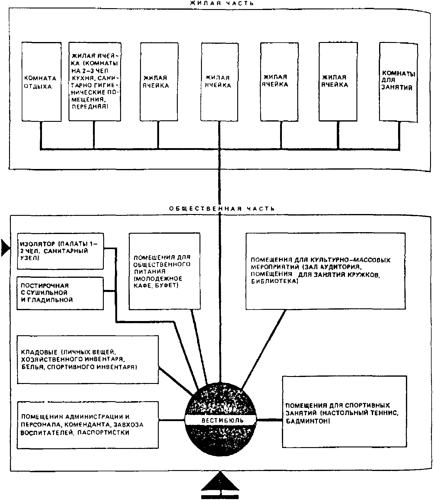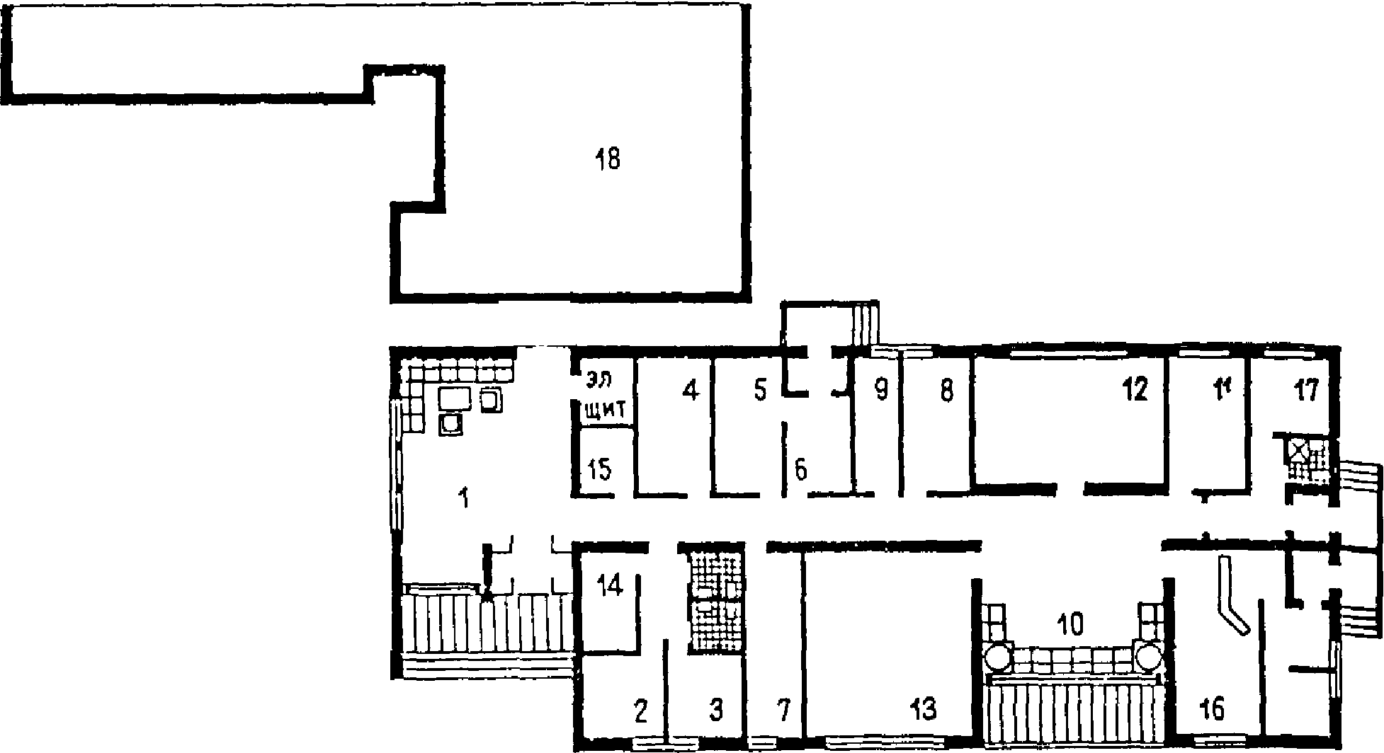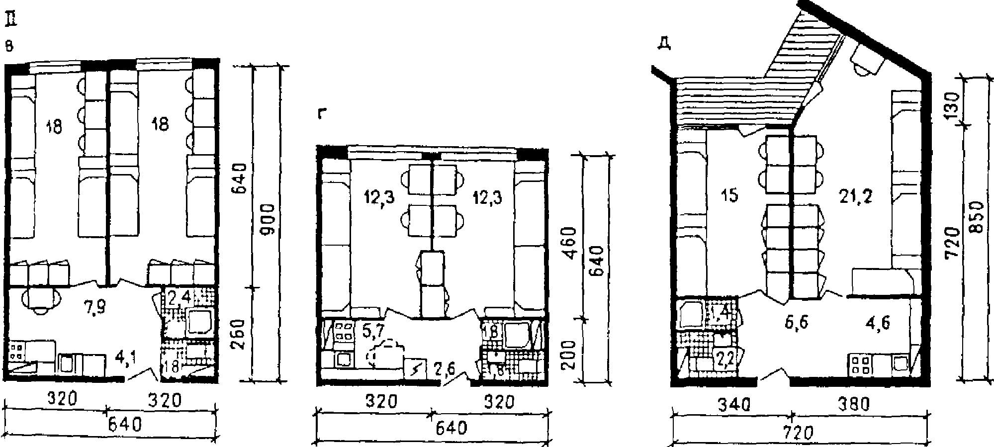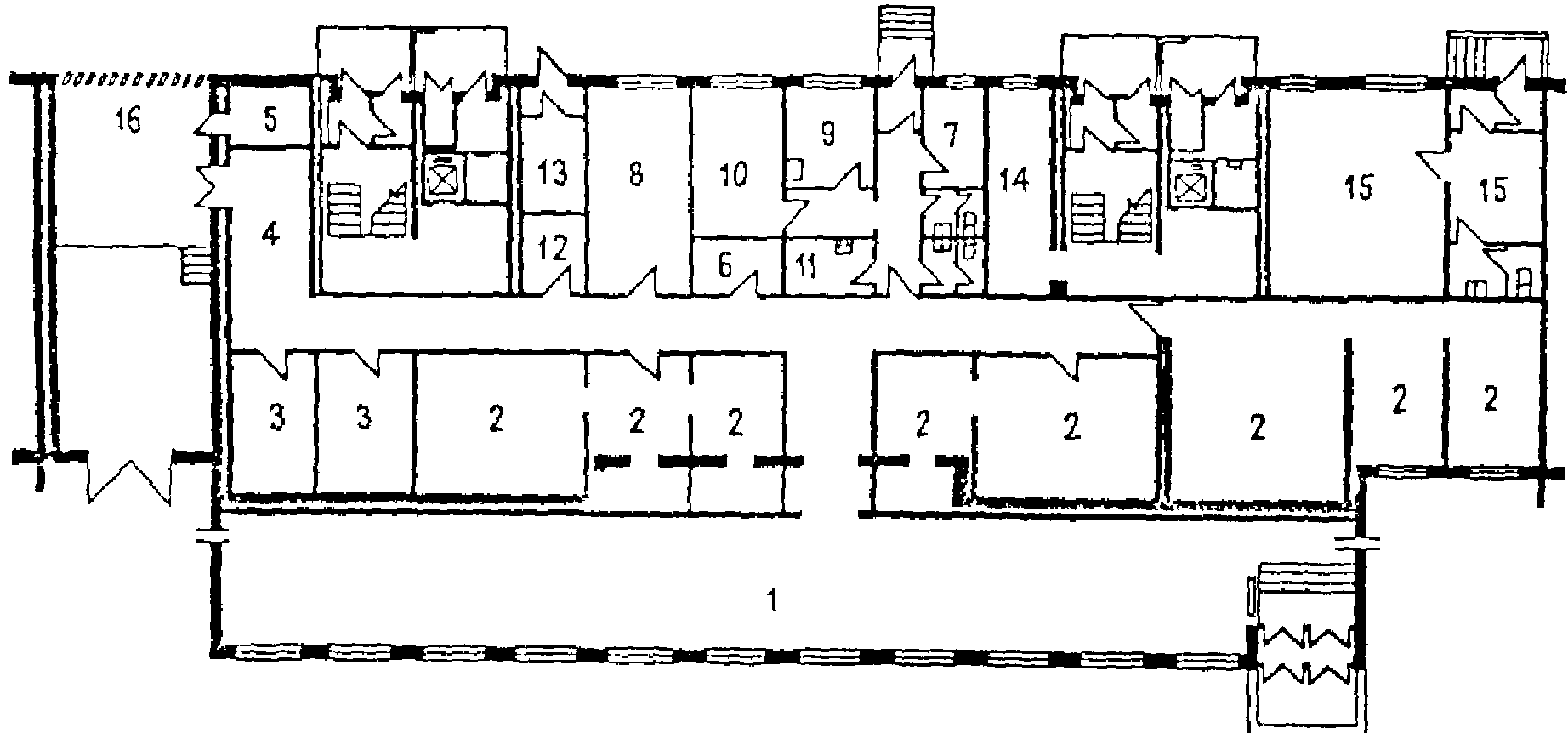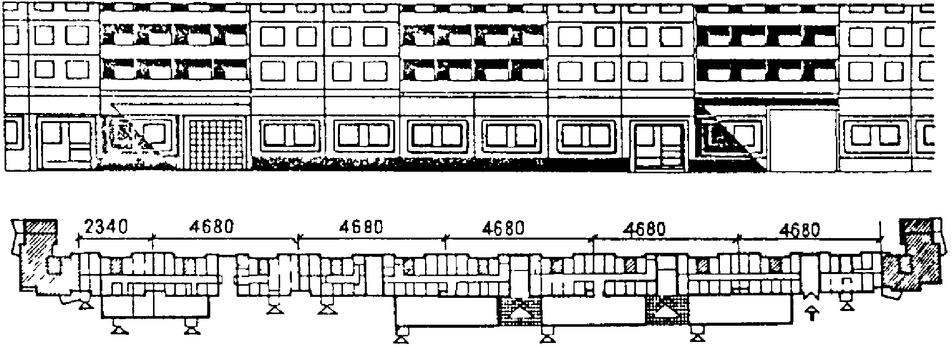 (рис. 9). Такая схема целесообразна для секций многосекционных домов и возможна для односекционных домов с Z-образной формой плана.