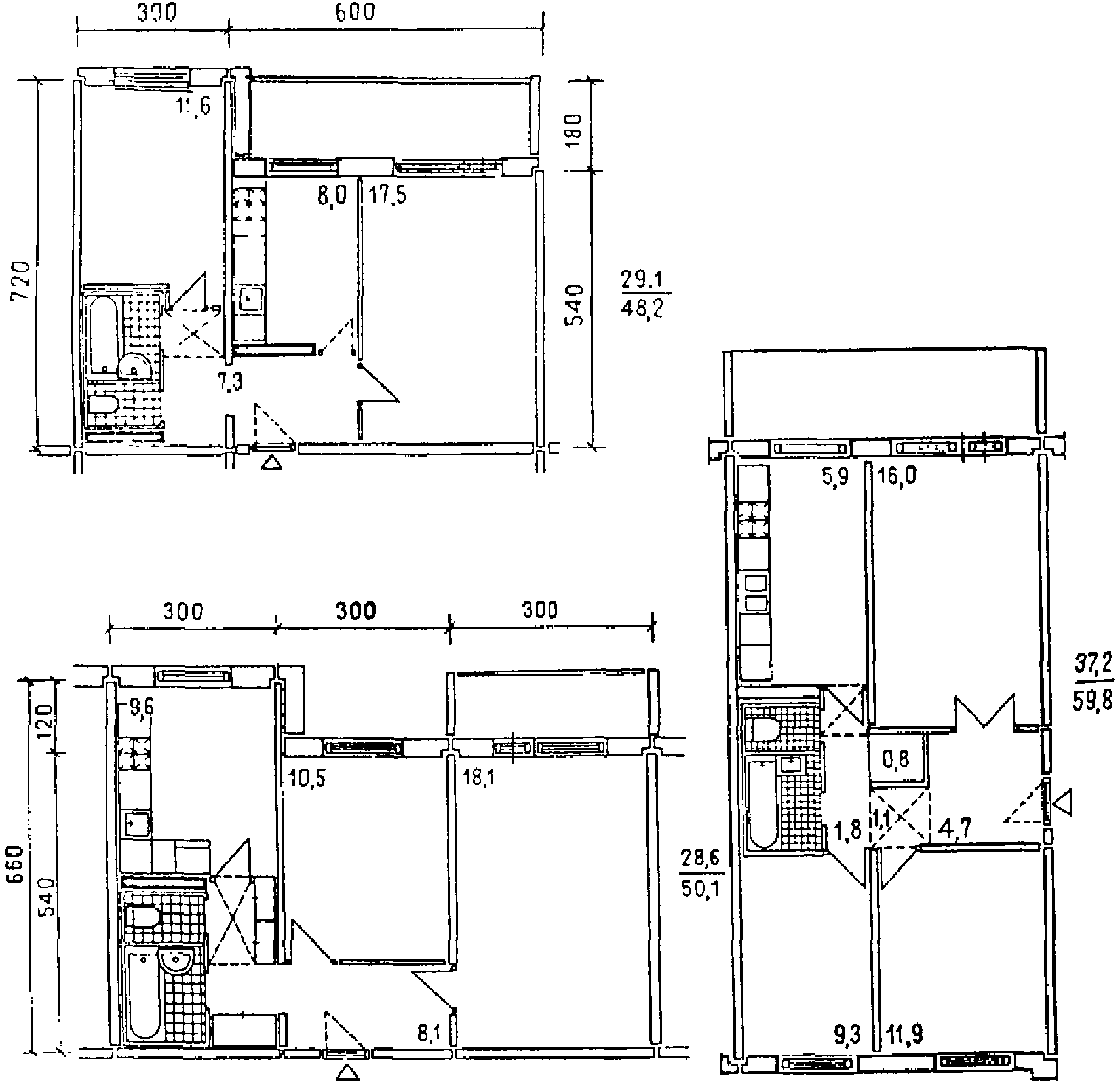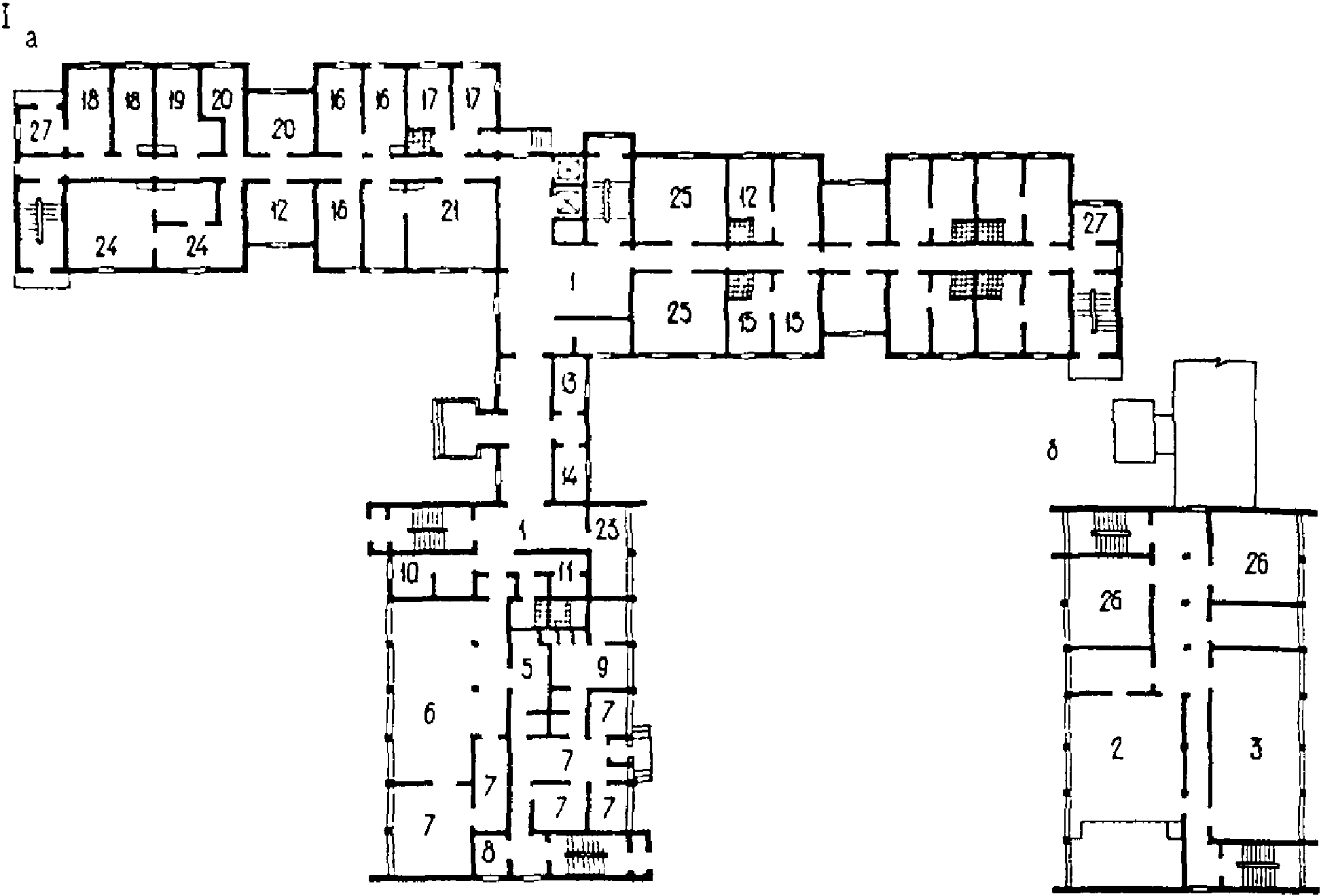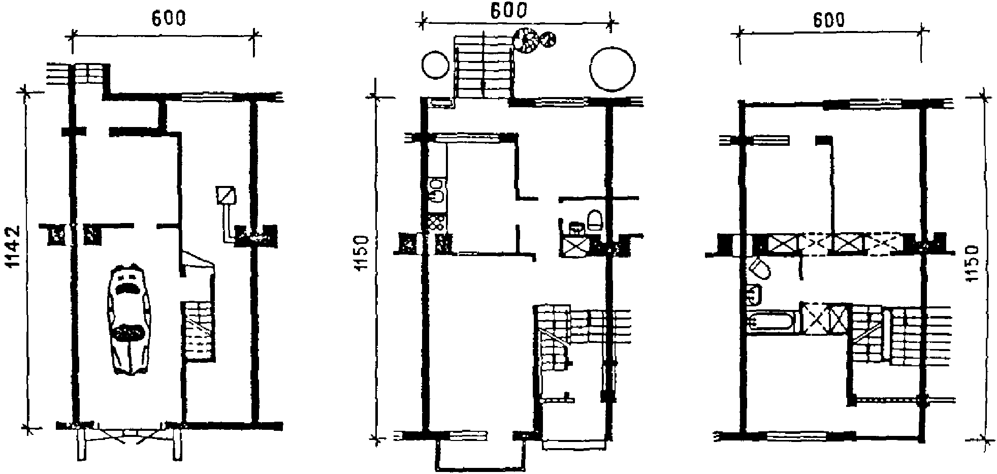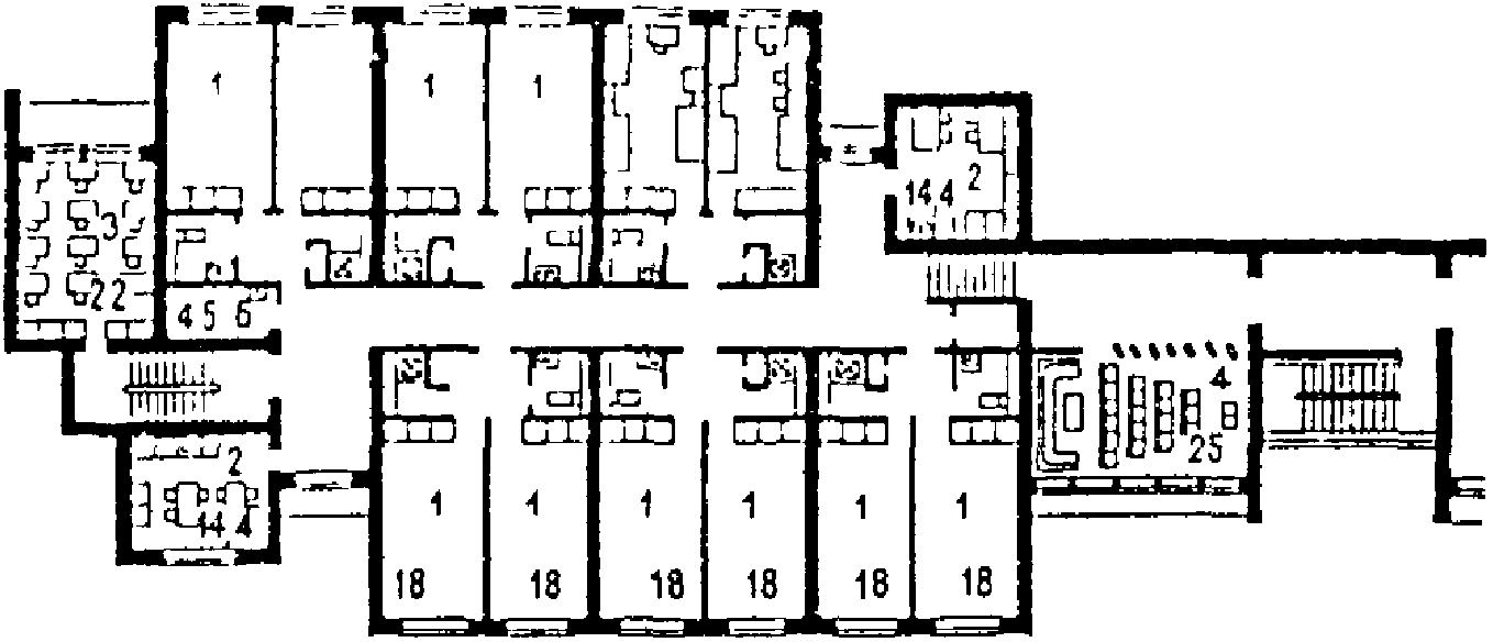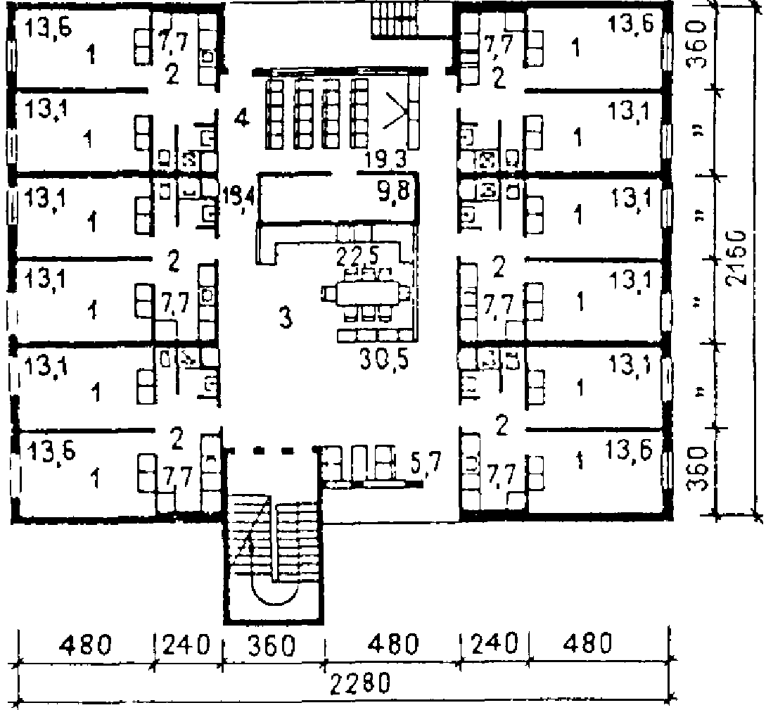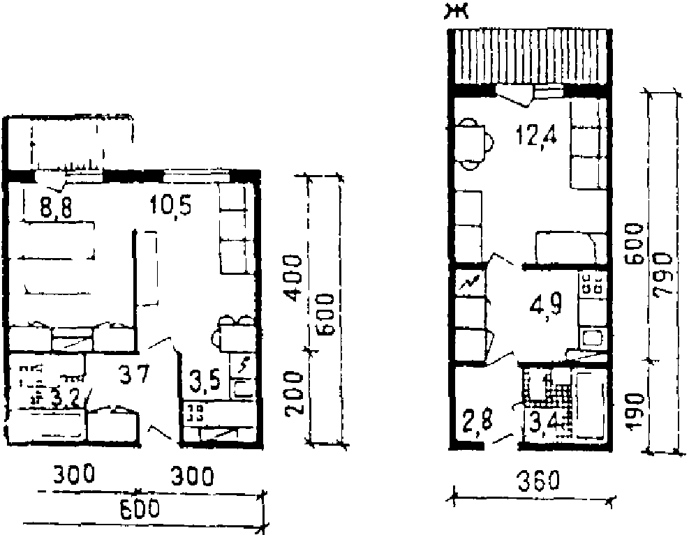(рис. 9). Такая схема целесообразна для секций многосекционных домов и возможна для односекционных домов с Z-образной формой плана.