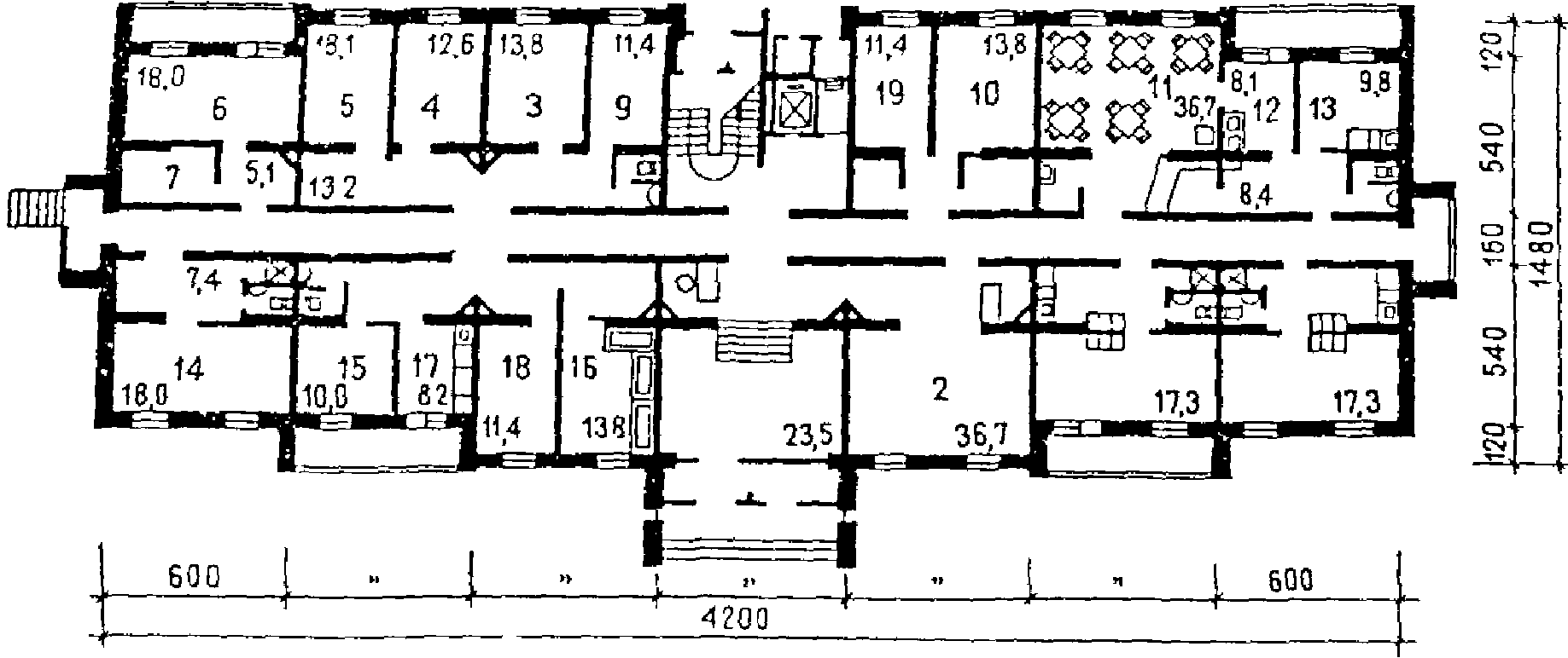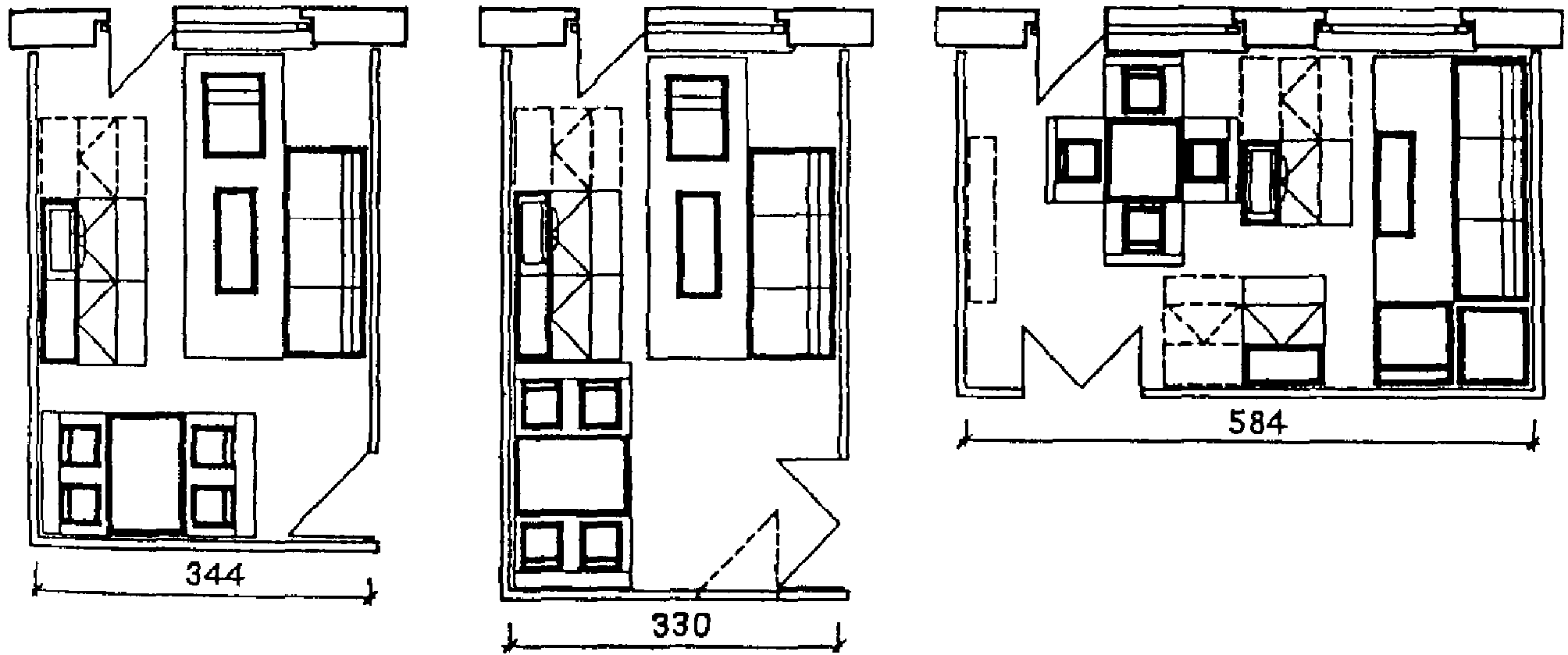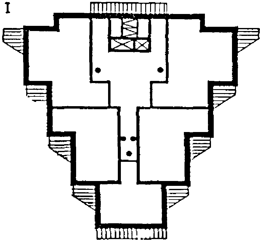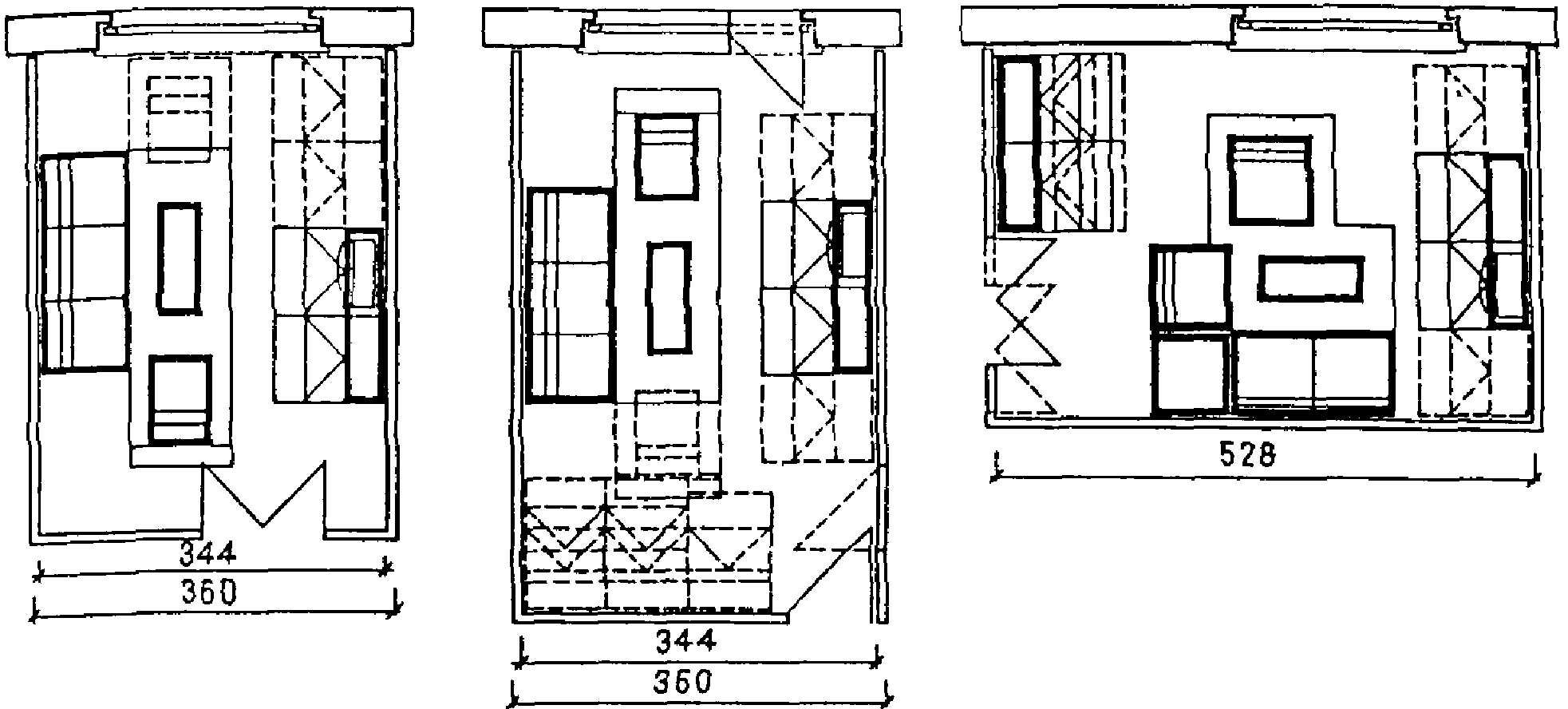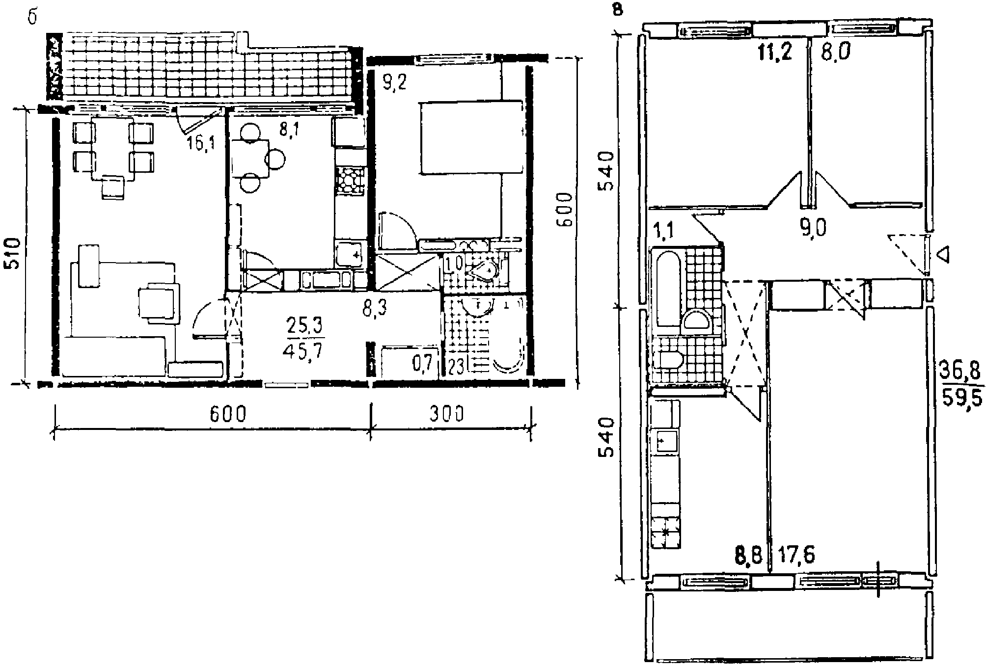 (рис. 9). Такая схема целесообразна для секций многосекционных домов и возможна для односекционных домов с Z-образной формой плана.
