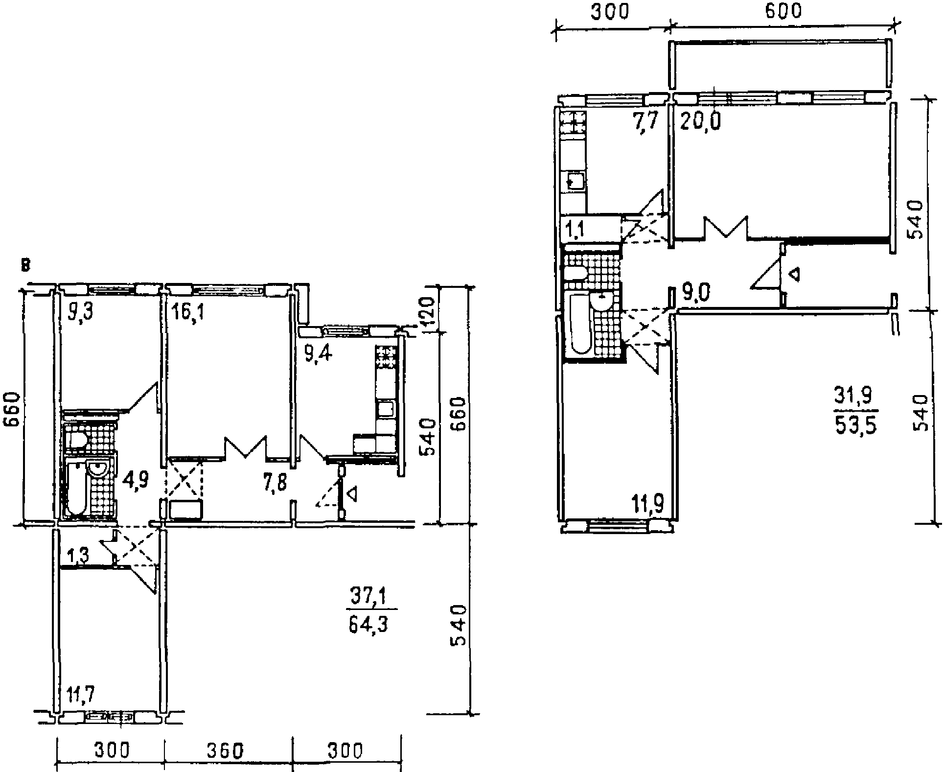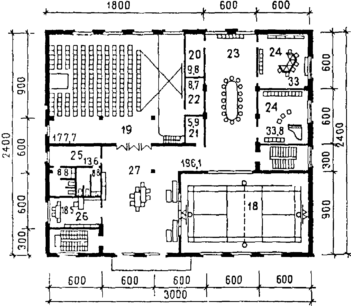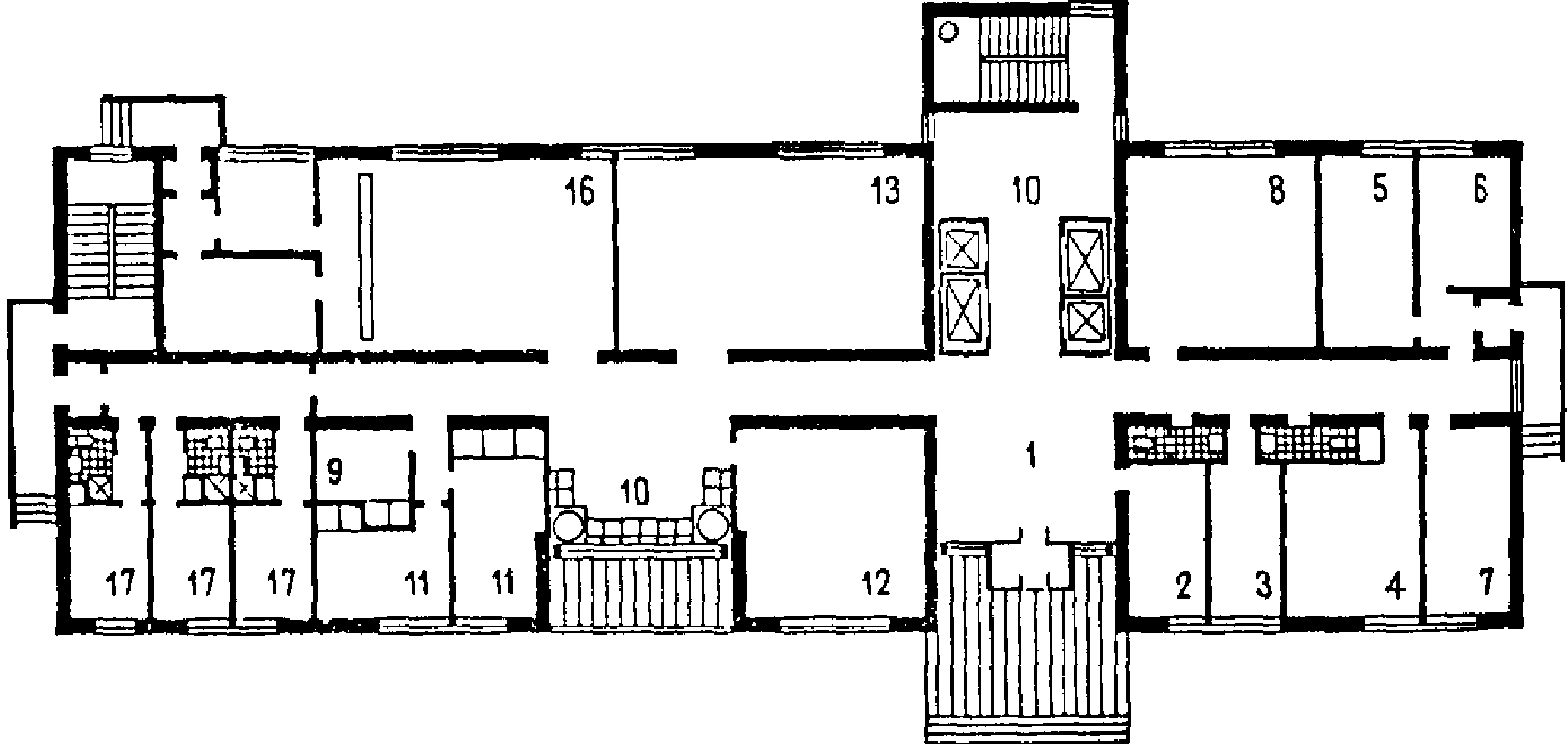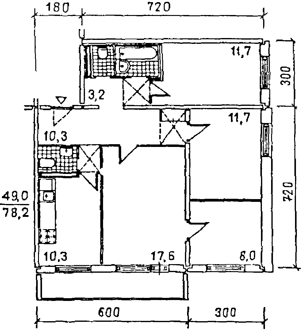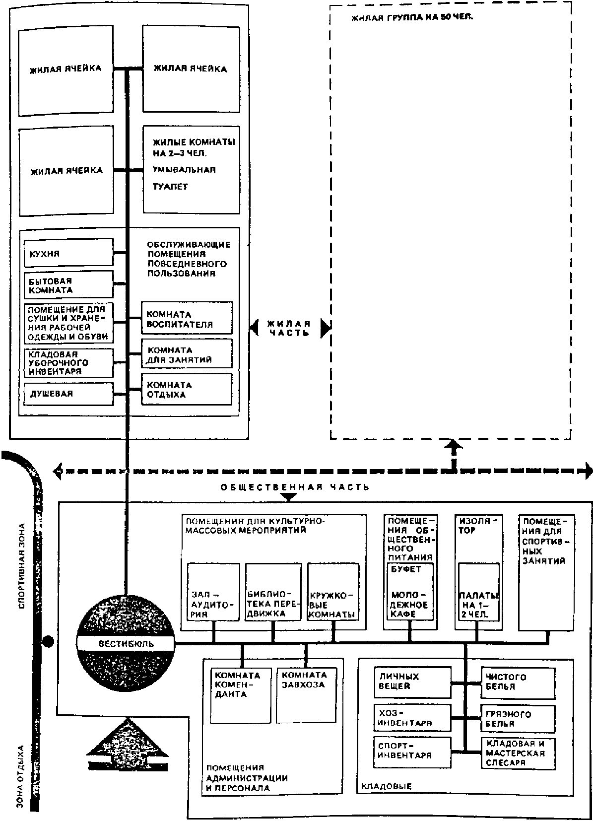 (рис. 9). Такая схема целесообразна для секций многосекционных домов и возможна для односекционных домов с Z-образной формой плана.