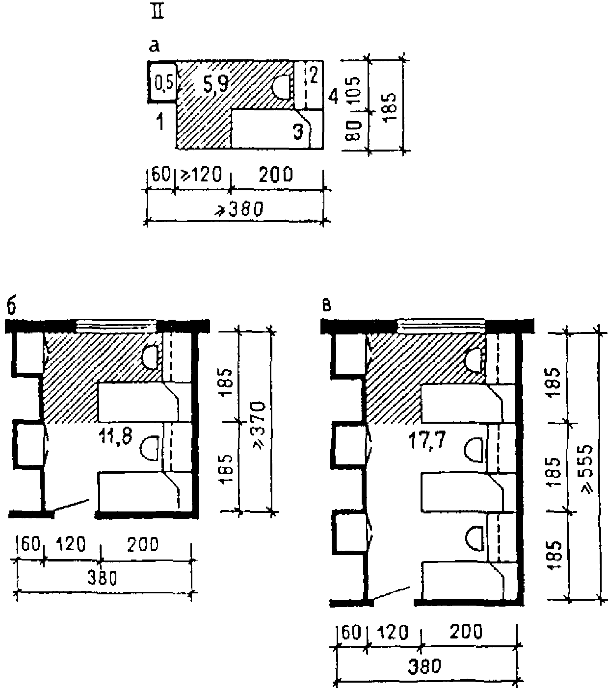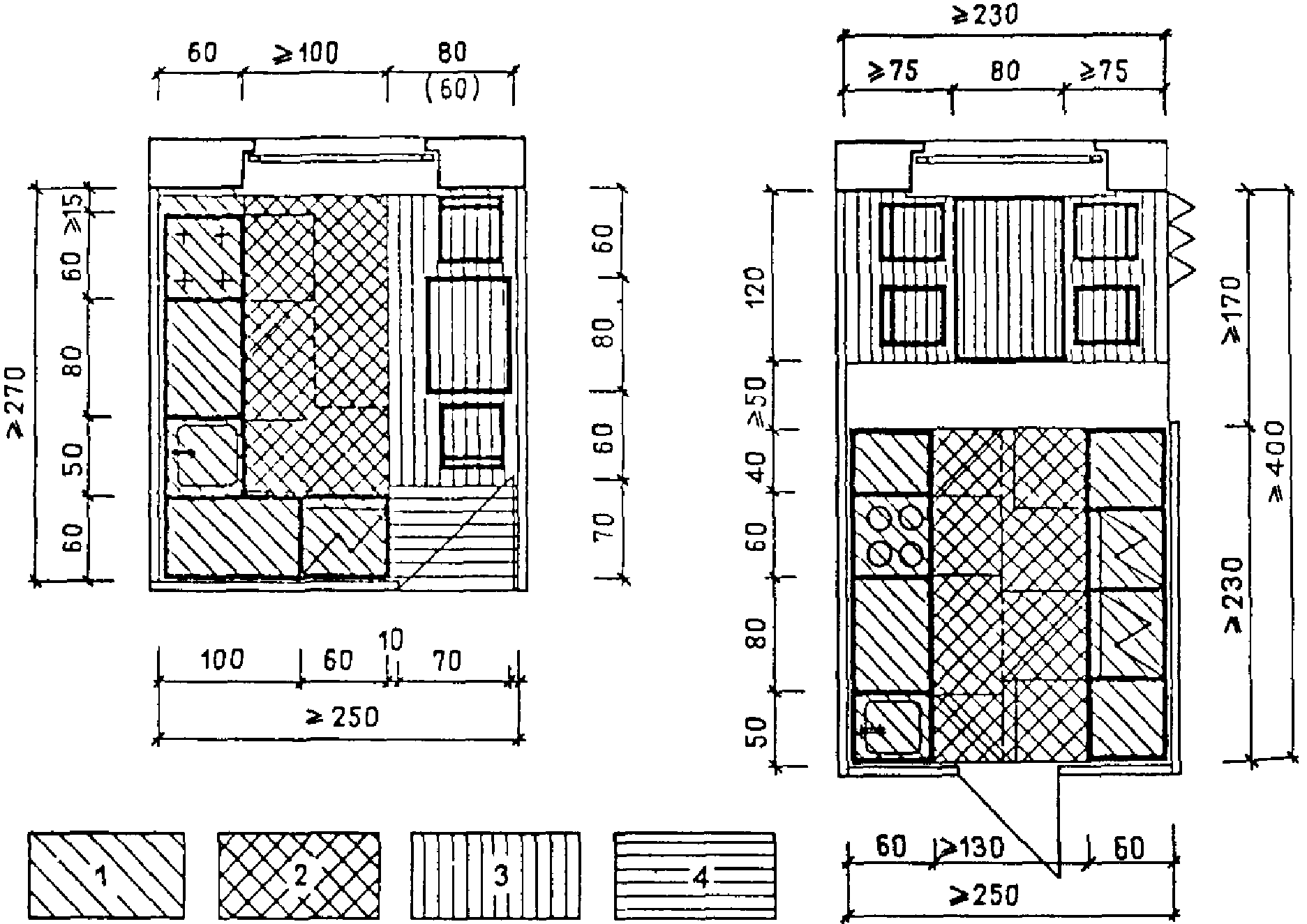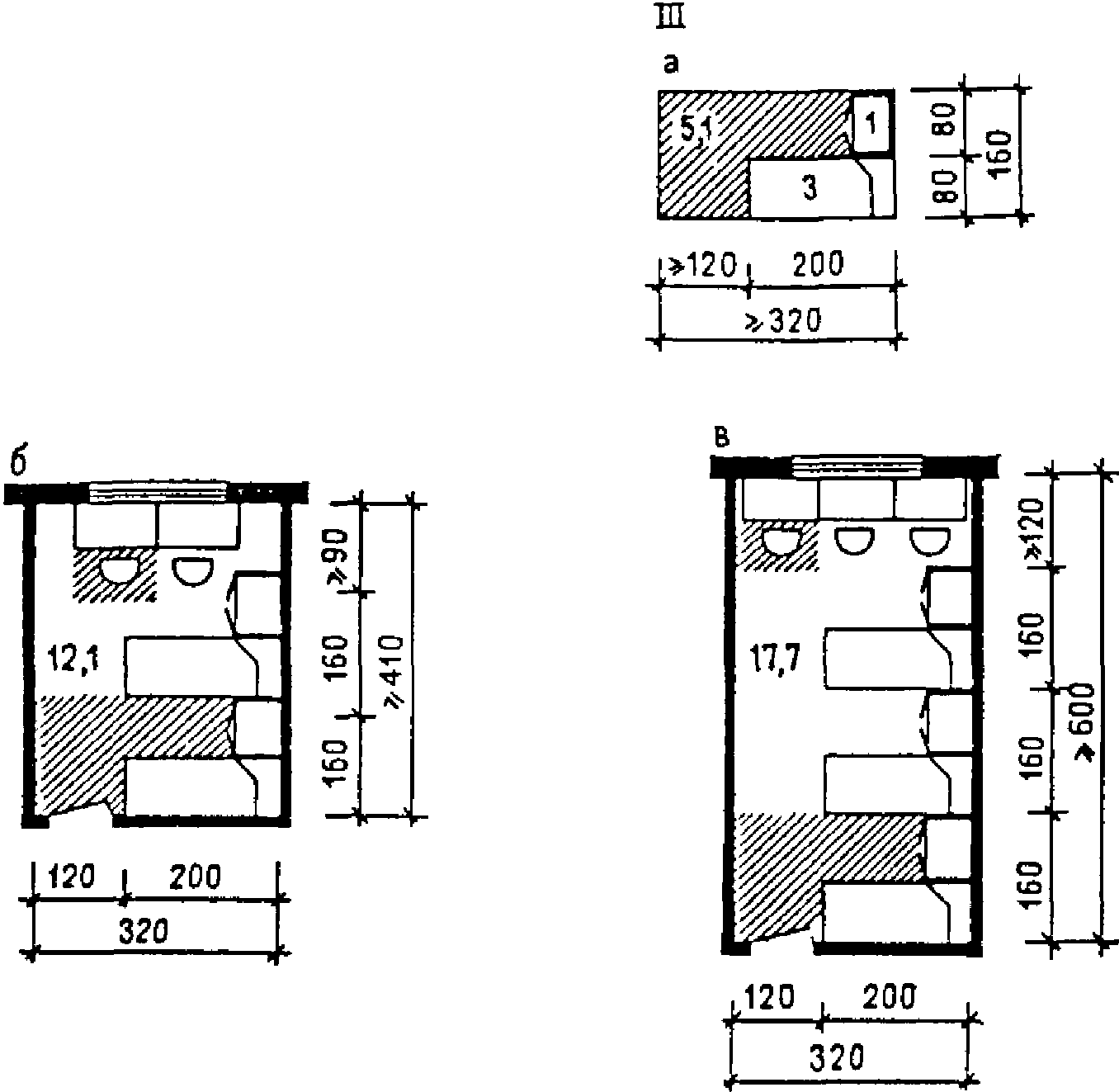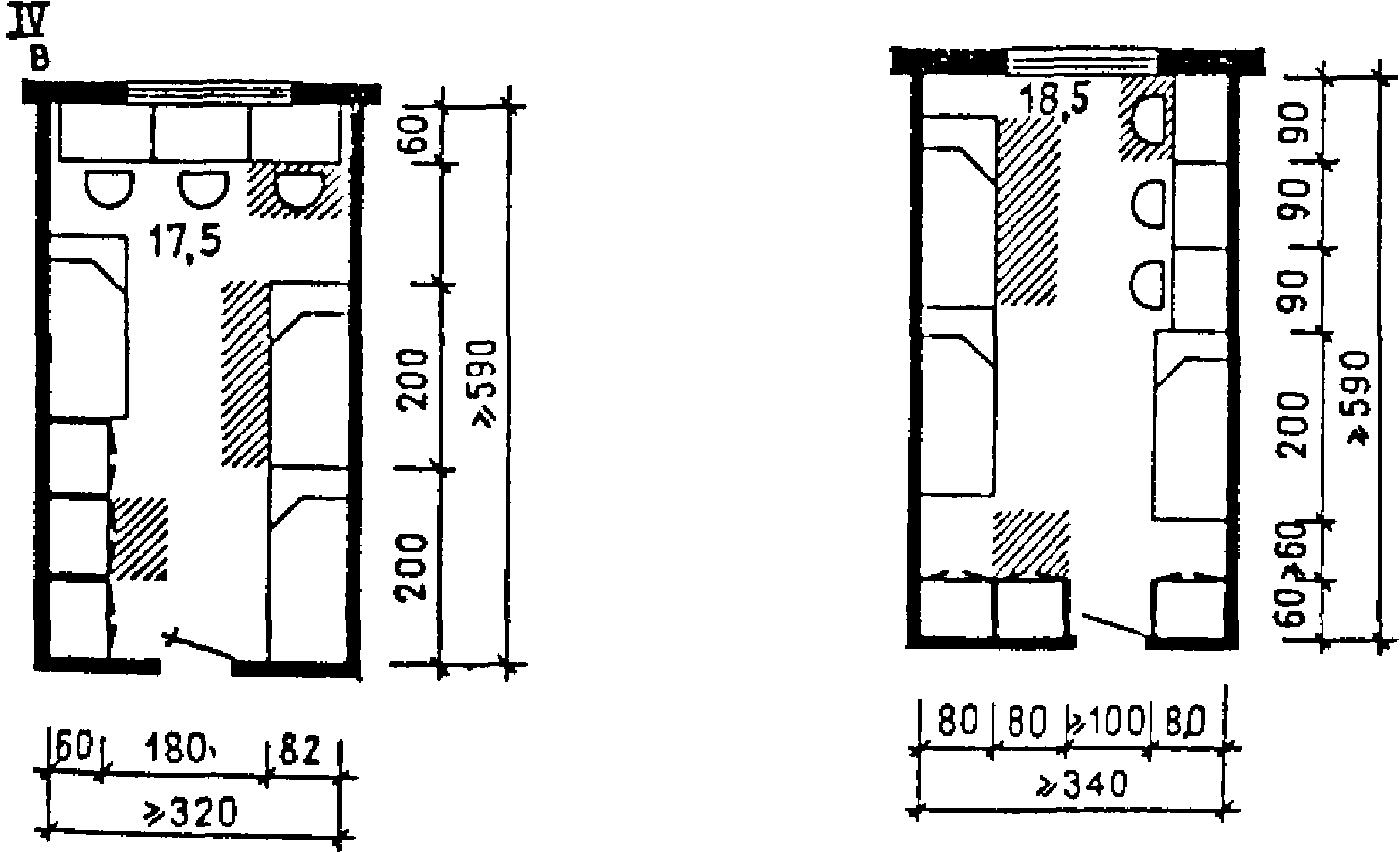 прил. 3 СНиП 2.08.01-89 в обоих вариантах, как минимум, один из лифтов заменяем на лифт грузоподъемностью 1000 кг с размером кабины 1100 x 2100 мм. Остальные лифты в варианте I следует принять с размером кабины 1600 x 1400 мм.