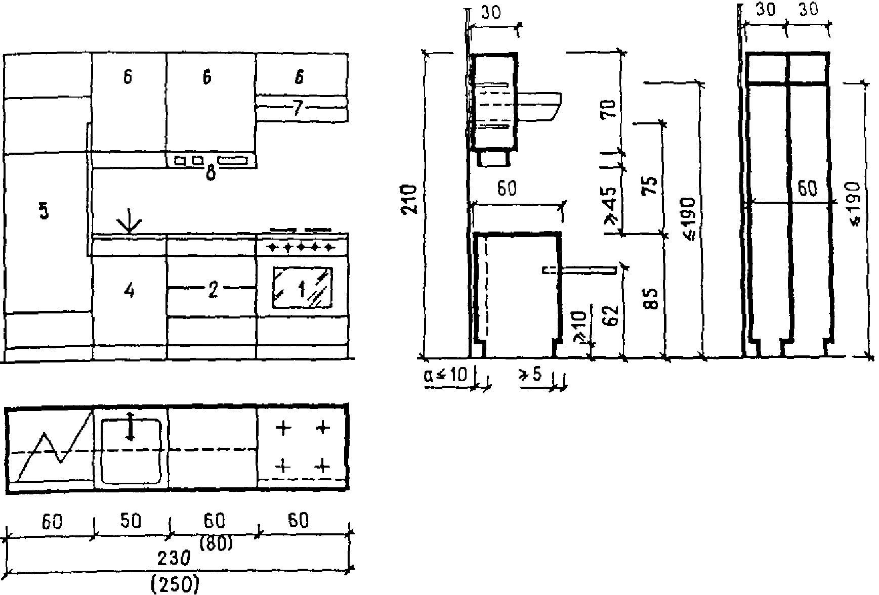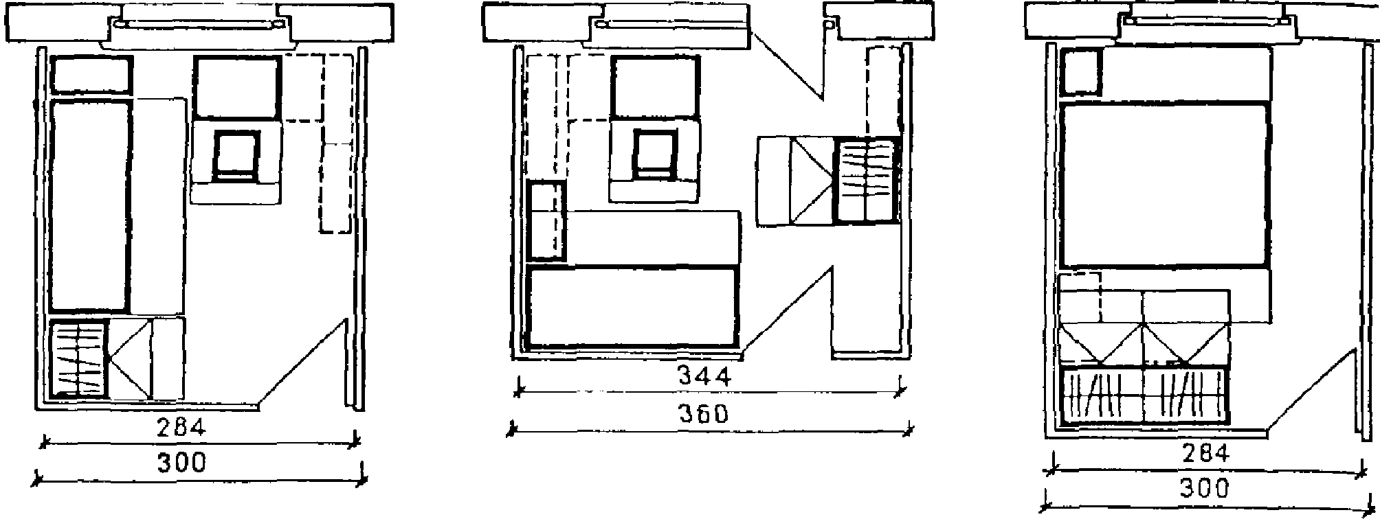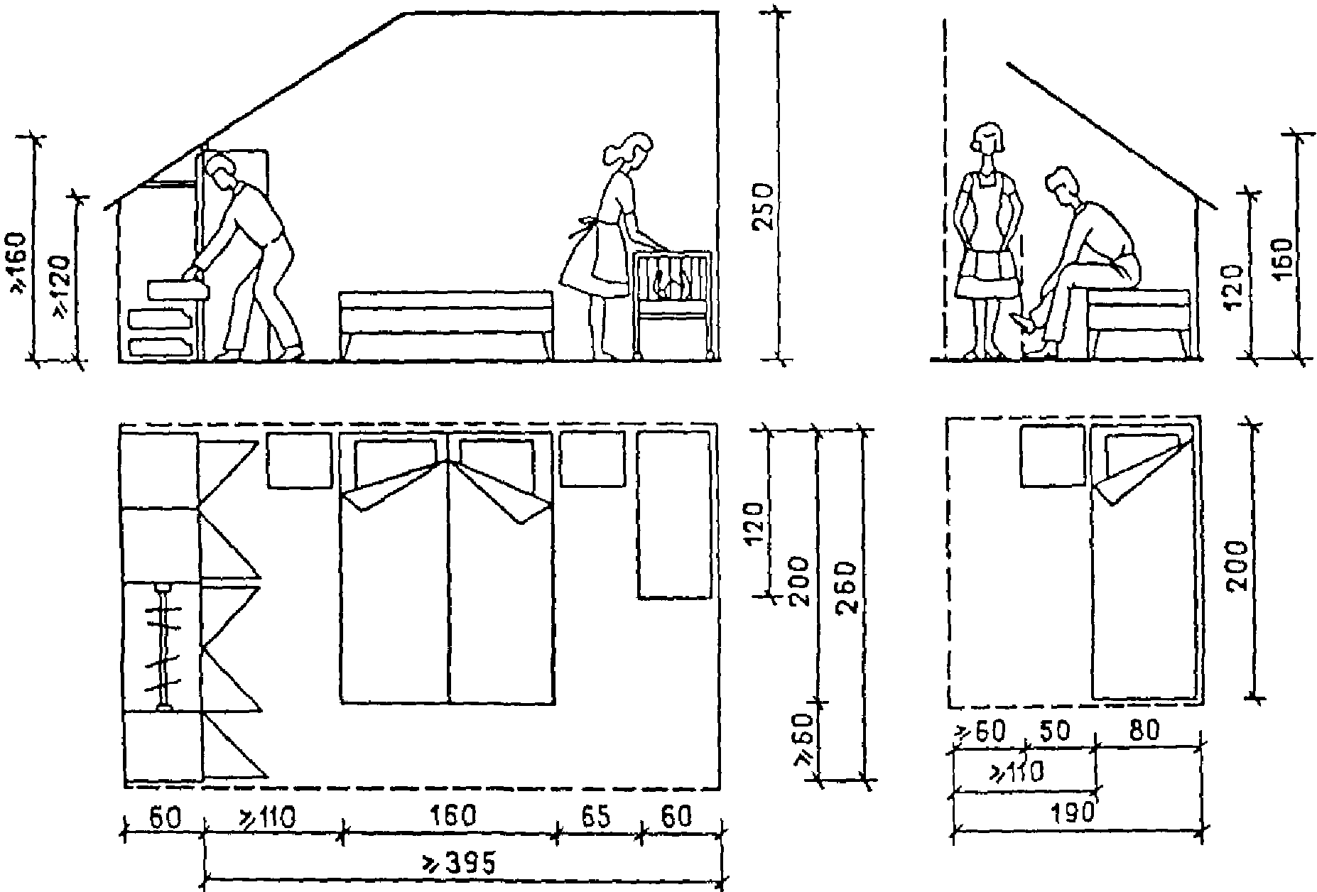 1.1. При проектировании мансардного этажа следует иметь в виду, что в нормируемую площадь помещения засчитывается лишь та часть, которая имеет высоту не ниже 1,6 м. Однако в практике используется и пониженная часть, где могут быть размещены встроенные шкафы, выдвижные емкости (ящики) для предметов домашнего обихода (рис. 1).