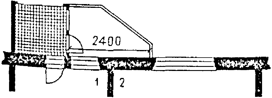 1 - продуктовая кладовая 6 м2; 2 - мастерская 8 м2;