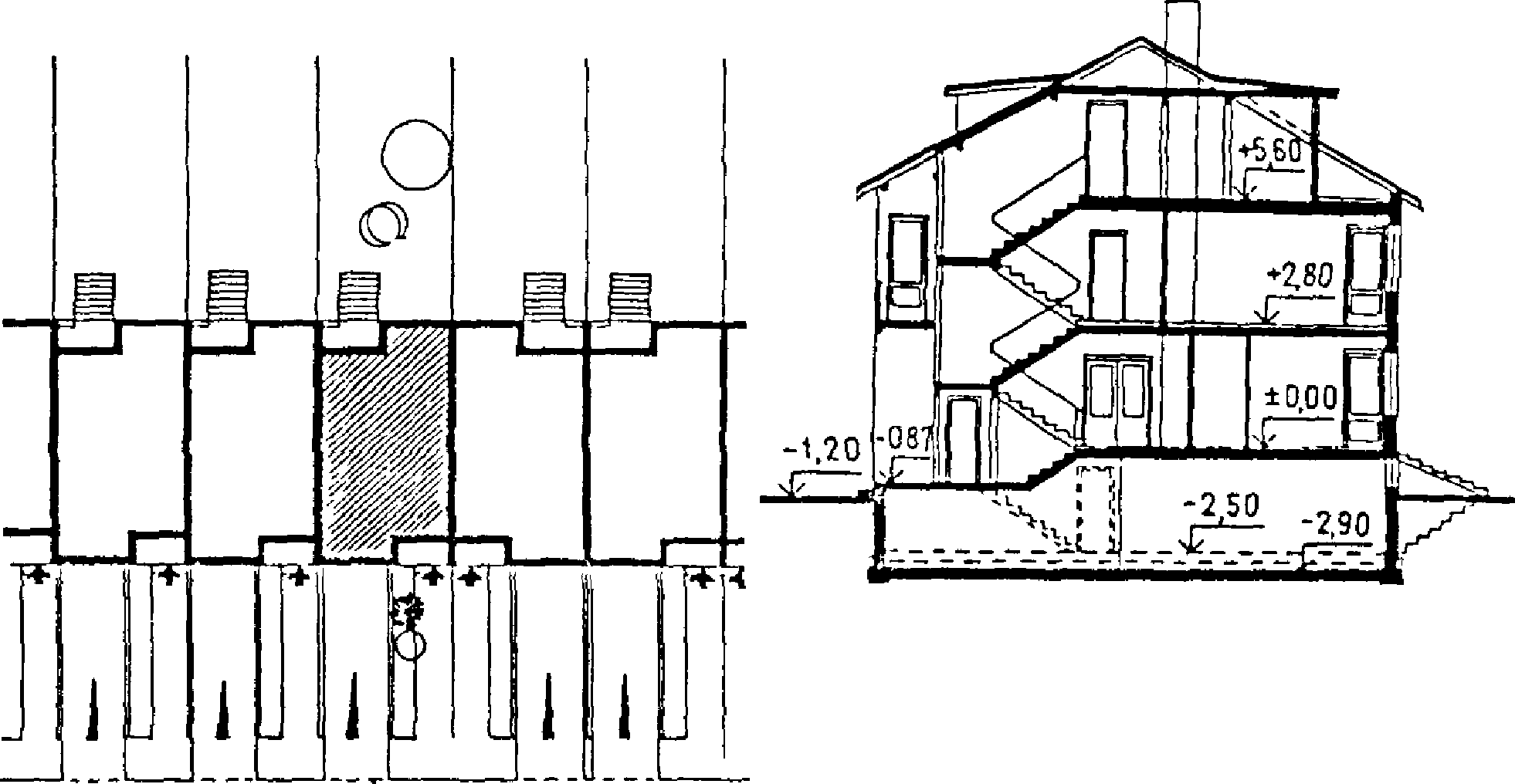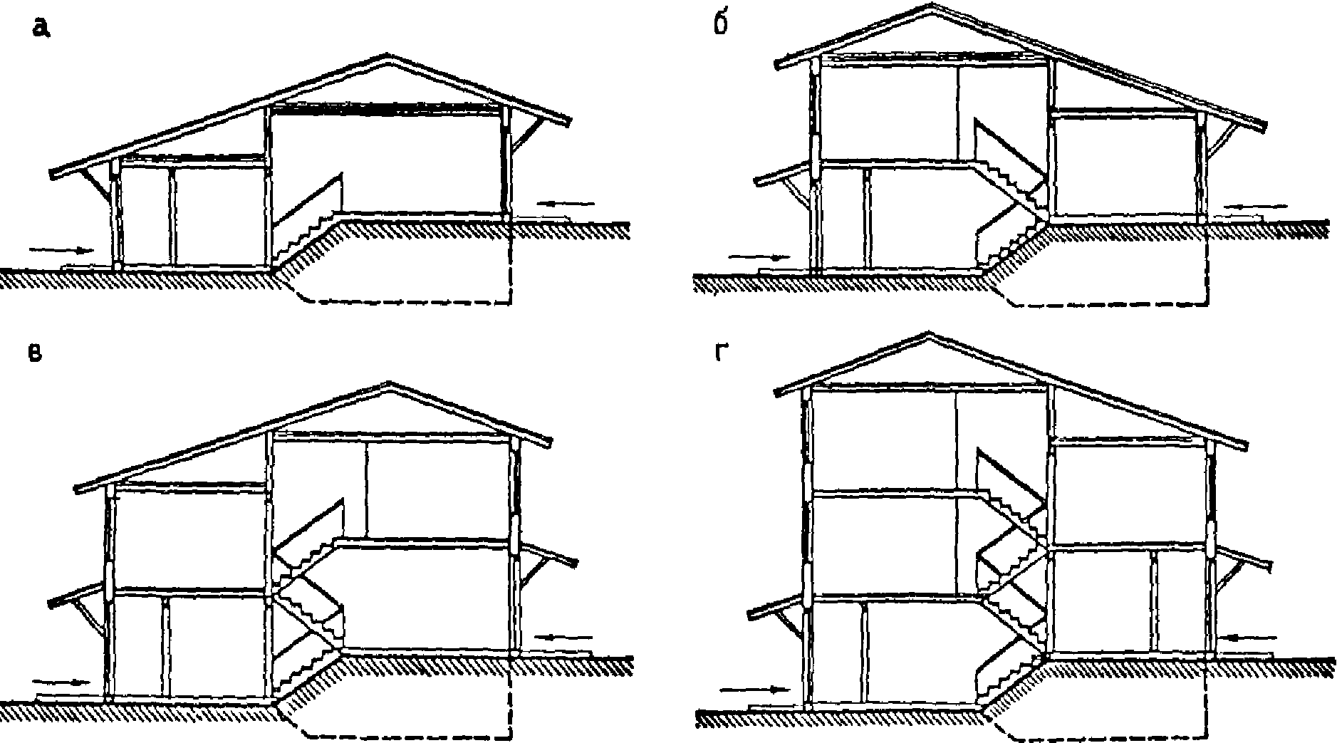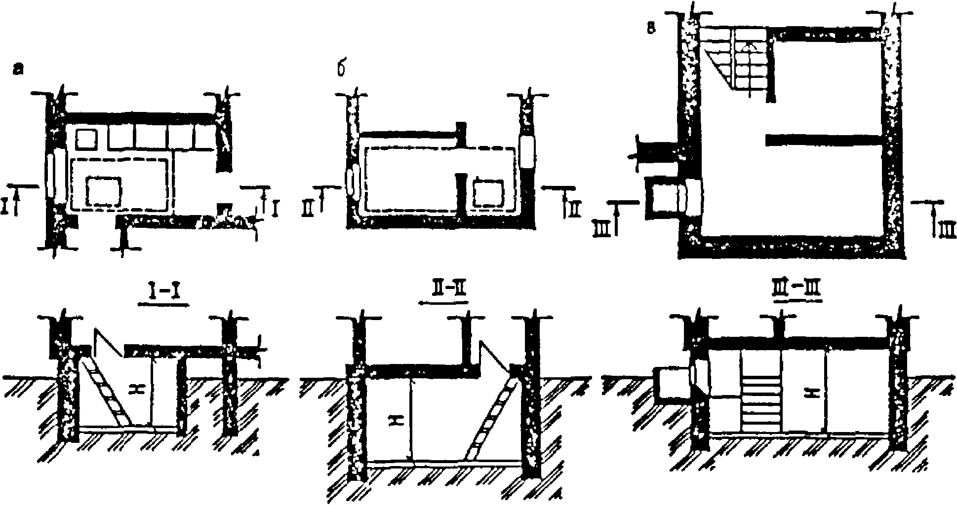 2.1. При проектировании сельского жилища следует учитывать, что для него характерно наличие под домом или вне его одного или нескольких подземных помещений, таких, как погреб, подполье, подвал (рис. 3).