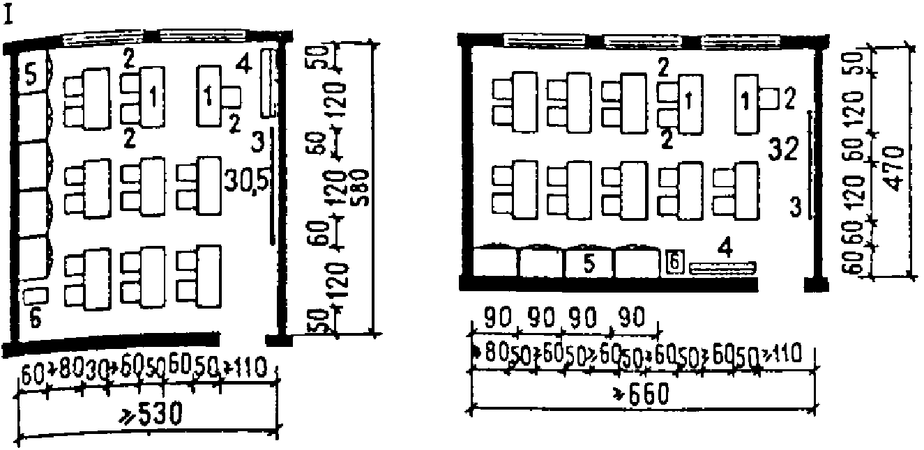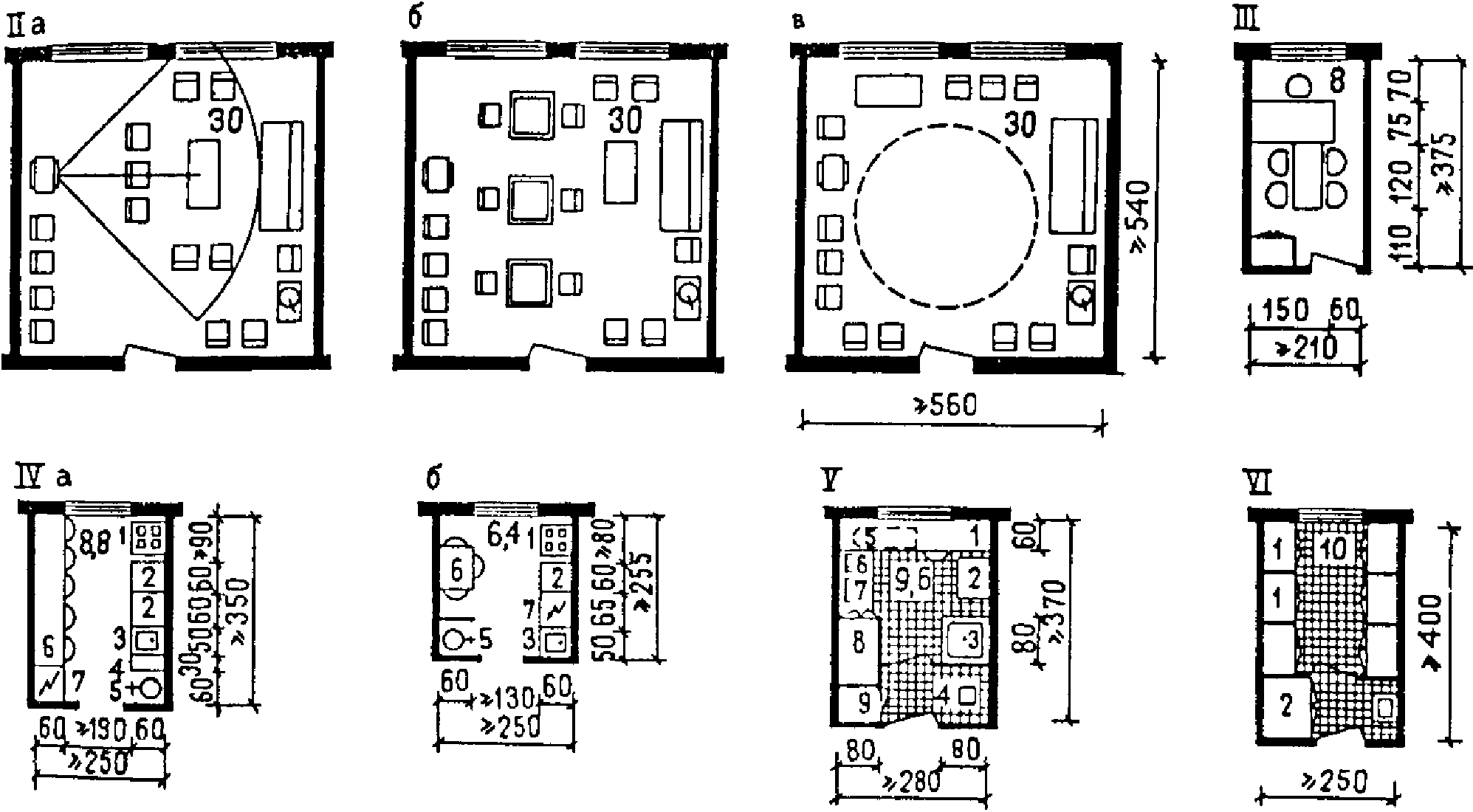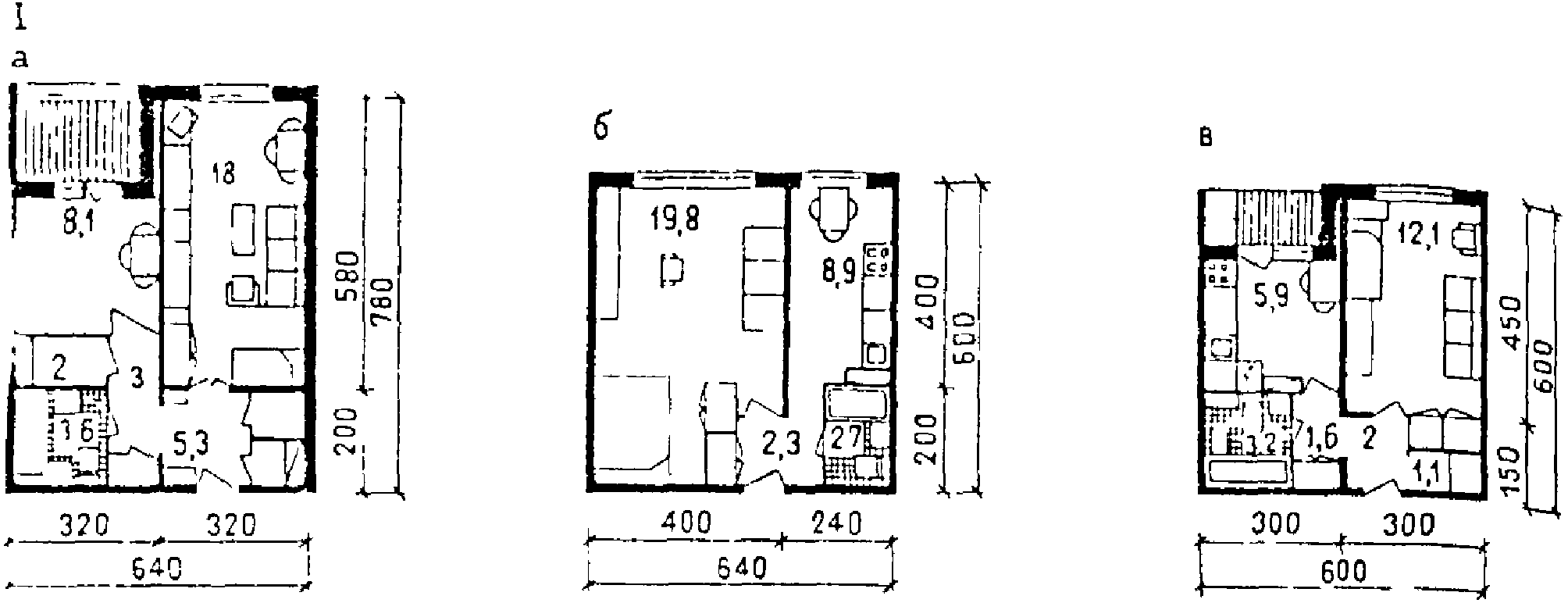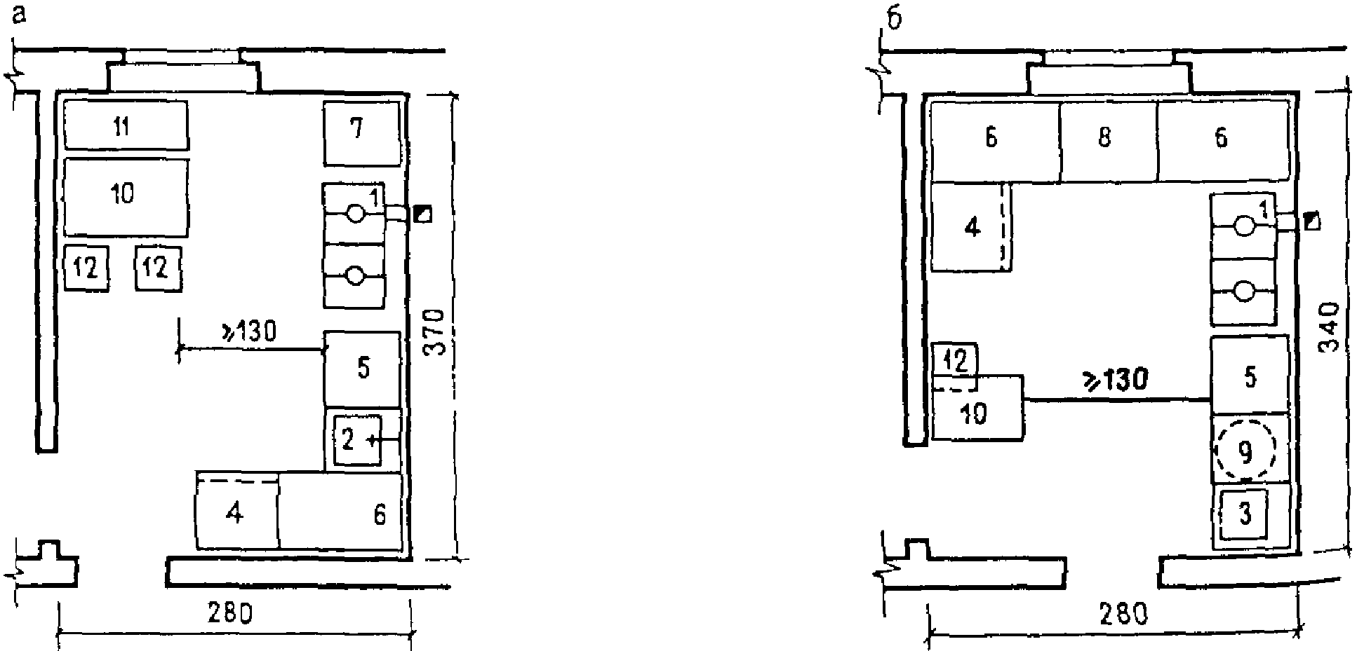 а - площадью 37 м2: 1 - склад топлива 5,5 м2; 2 - рабочая