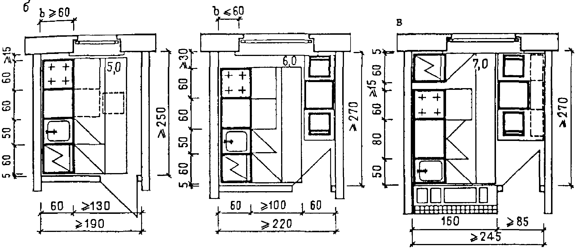 Площади помещений подвала целесообразно принимать, м2: топочной до 3, склада топлива 3 - 10, продуктовой кладовой 2 - 6, кладовой овощей 7 - 8, сушильного шкафа 0,6 - 1,2, кладовой хозяйственного инвентаря 1,5 - 4.