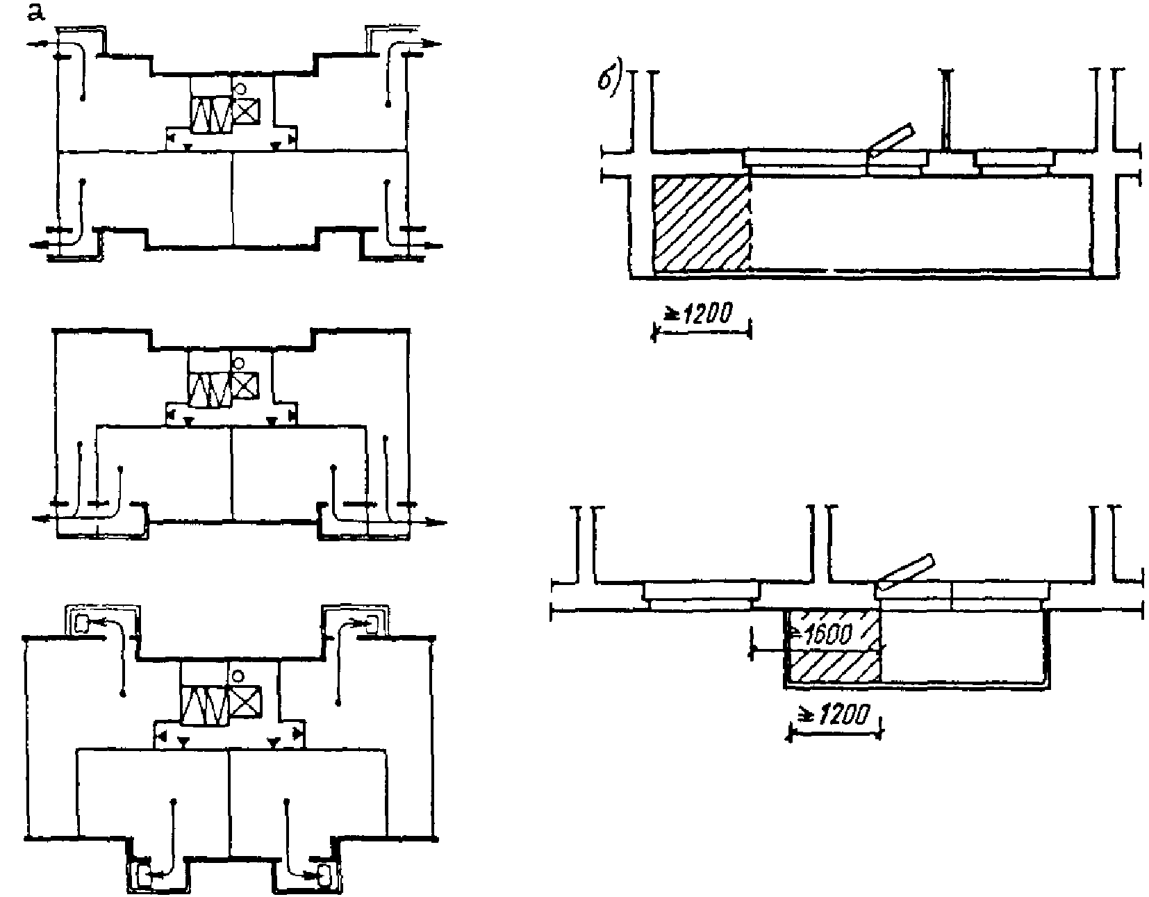 (рис. 6). Нижняя часть ствола мусоропровода перекрывается шибером. Высота от пола мусорокамеры до нижней части шибера должна быть в свету не менее 1,35 м.