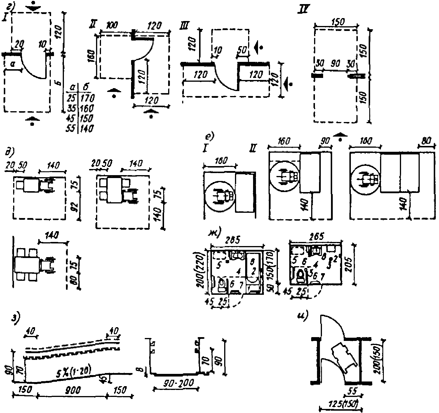 Размеры и планировку камеры следует принимать с учетом размещения и обслуживания стандартных контейнеров-мусоросборников и установки санитарно-технического оборудования. Для перемещения контейнера устраивается пандус с уклоном не более 8%.