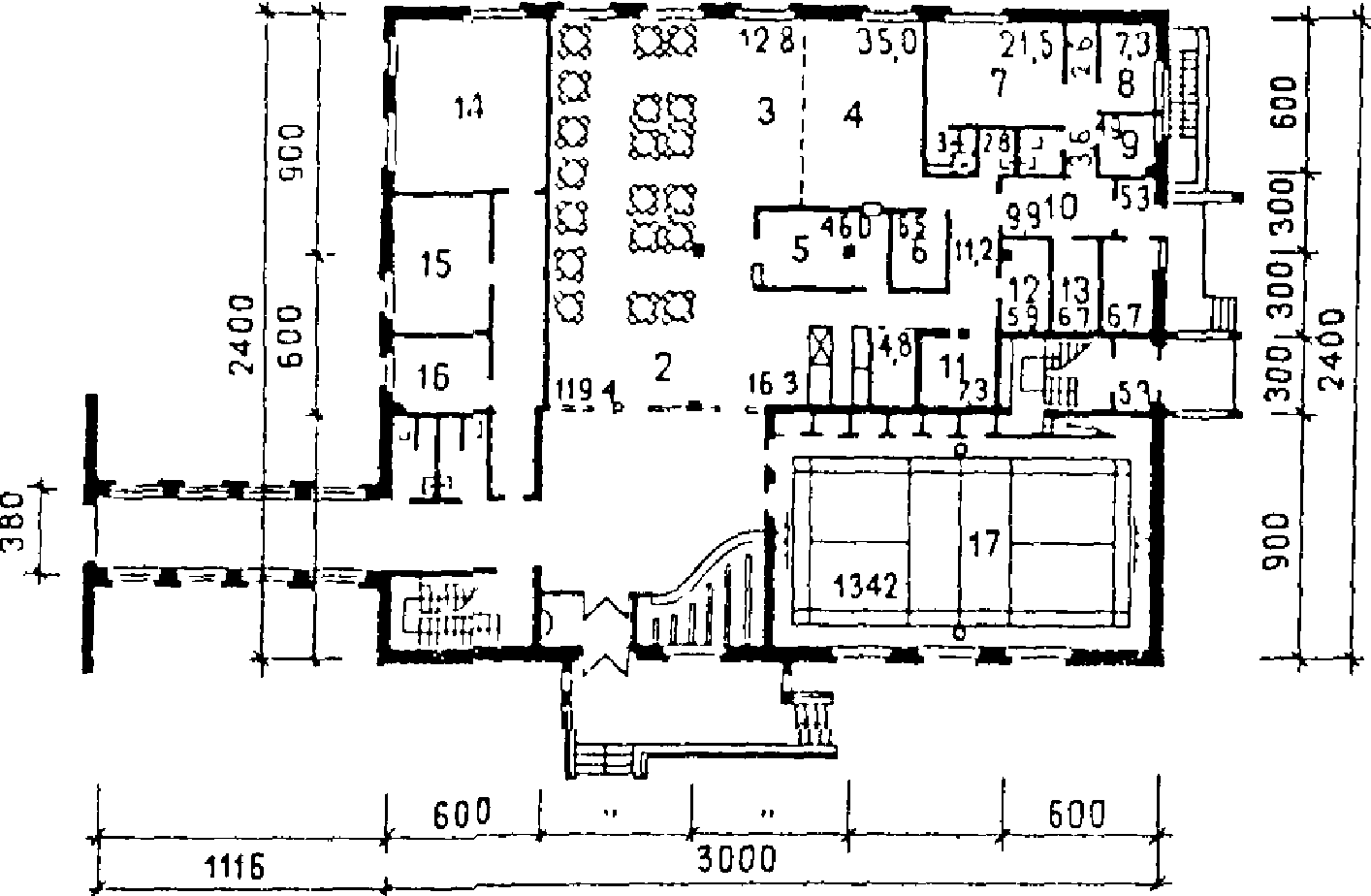 2 - рабочая кухня с котлом отопления 13 м2; 3 - продуктовая