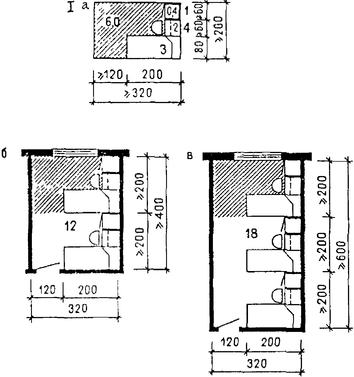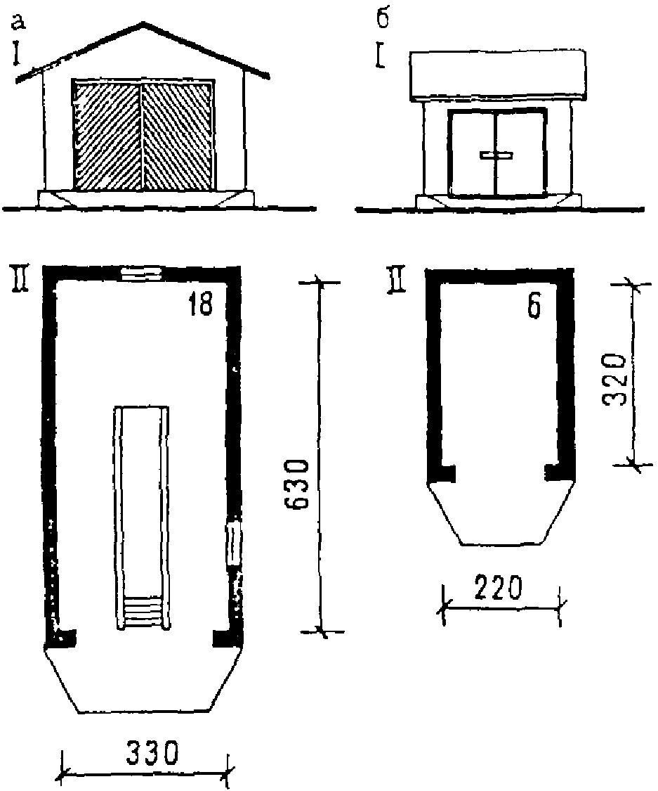 инвентаря 2 м2; 5 - гараж 18 м2; б - площадью 14 м2: