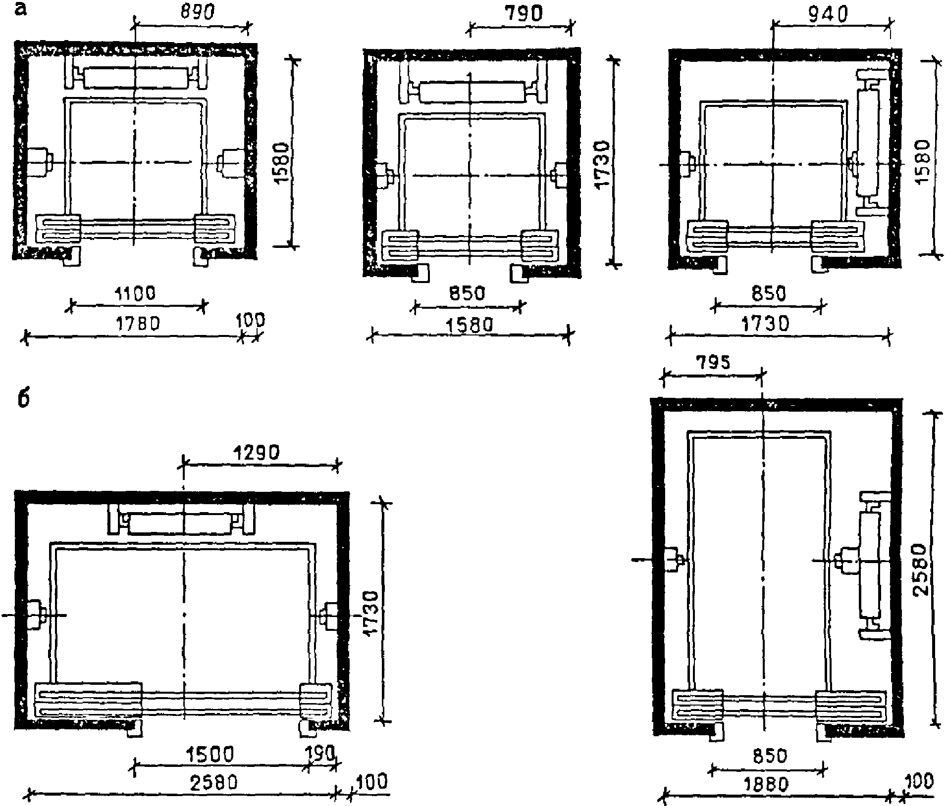 Рис. 8. Возможные варианты компоновки лифтовых групп