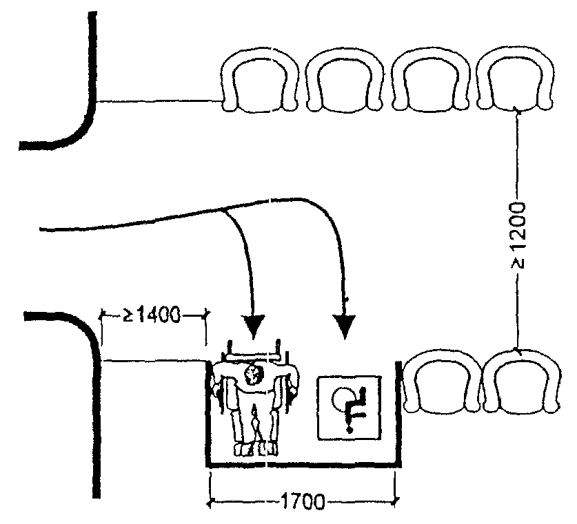 9.5. Около мемориалов, не имеющих обитаемых пространств, чаш для раздачи святой воды, иных используемых посетителями сооружений на участке культового здания или сооружения следует предусматривать места для инвалидов на креслах-колясках, непосредственно связанные с путями движения на участке, а также зону ожидания в непосредственной близости от них.