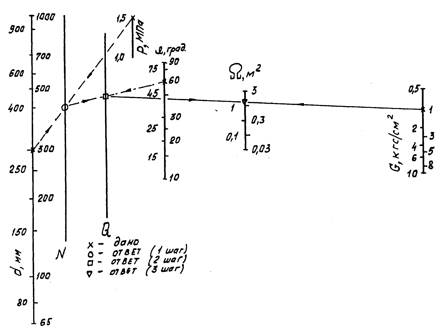 Рисунок В.1. Номограмма для выбора опорной площади упоров