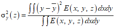 где момент второго порядка функции распределения плотности мощности E(x,y,z) пучка в направлении z определяется как