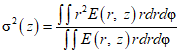 где момент второго порядка функции распределения плотности мощности E(x,y,z) пучка в направлении z определяется выражением