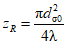 Диаметр пучка определяется как