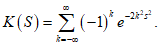 . Для сравнения приведена функция распределения Колмогорова K(S).