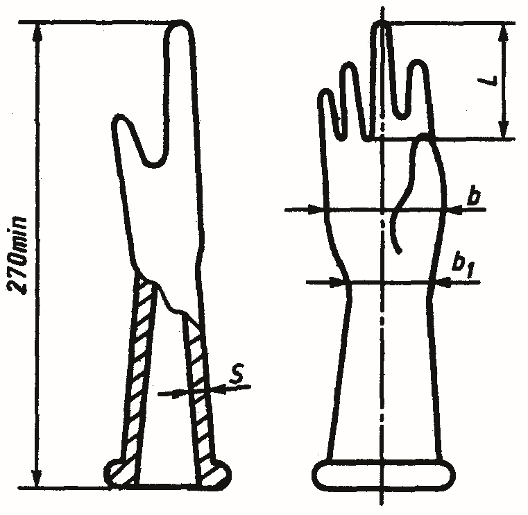 На полый сквозной цилиндр надевают муфту и укрепляют ее на такой высоте, чтобы расстояние между нижним краем цилиндра и верхней поверхностью муфты не превышало 60 мм. Затем, растягивая слегка венчик перчатки, надевают ее снизу на цилиндр и укрепляют венчик на уровне верхней поверхности муфты.