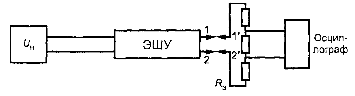 Б.5.3. Схема подключения ЭШУ к испытательному оборудованию и измерительному вольтметру приведена на рисунке Б.2.